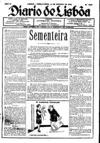 Pasta: 05746.010.02642Título: Diário de LisboaNúmero: 2255Ano: 8Data: Terça, 14 de Agosto de 1928Directores: Director: Joaquim MansoEdição: 1ª ediçãoFundo: DRR - Documentos Ruella RamosTipo Documental: IMPRENSA Página(s): 8