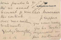 Pasta: 08084.078Assunto: Convite a Teixeira Gomes para almoço no Carlton no dia 03.MAI.1916.Remetente: Marquise de BeaumontDestinatário: Manuel Teixeira Gomes, Ministro de Portugal em LondresData: Domingo, 23 de Abril de 1916Fundo: DTE - Documentos Manuel Teixeira GomesTipo Documental: Correspondencia Página(s): 4