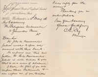 Pasta: 08084.134Assunto: Aceita convite de Teixeira Gomes para almoço no Carlton.Remetente: Heinz VogtDestinatário: Manuel Teixeira Gomes, Ministro de Portugal em LondresData: Terça, 9 de Maio de 1916Fundo: DTE - Documentos Manuel Teixeira GomesTipo Documental: Correspondencia Página(s): 1