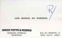 Pasta: 07517.036.001Assunto: Cartão de Luís Manuel de Noronha, Banco Totta e & Açores.Remetente: Luís Manuel de Noronha, Banco Totta e & AçoresData: s.d.Fundo: DFL - Documentos Felicidade AlvesTipo Documental: Correspondencia Página(s): 1