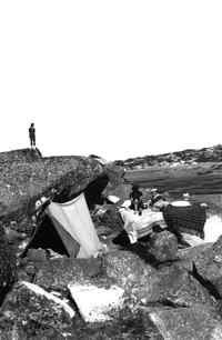 Pasta: 07561.000.001Título: Serra da Estrela. Lapa dos CharcosAssunto: Serra da Estrela. Lapa dos Charcos. Em primeiro plano, Maria Laura e Armando Gibert e respectiva tenda de campismo, à entrada da caverna. Em cima, em último plano, Pilar Baptista Ribeiro contempla os "charcos"Autor: Guida LamiData: Agosto de 1940Fundo: DGD - Documentos Guida LamiTipo Documental: Fotografias Página(s): 1