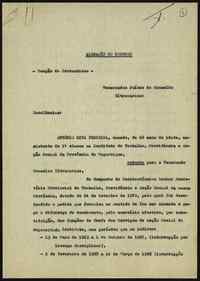 Pasta: 10489.046Assunto: Mandado de notificação a António Rita-Ferreira para que apresente a alegação do recurso por si interposto relativo ao processo que interpôs respeitante ao abono da diferença de vencimentos relativa ao tempo em que efectivamente exerceu, por substituição, as funções de chefe dos serviços de acção social.Data: Quinta, 17 de Dezembro de 1970Fundo: António Rita-FerreiraTipo Documental: Documentos Página(s): 1