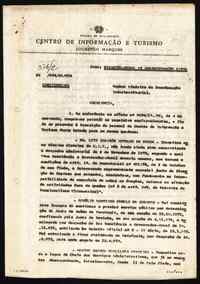 Pasta: 10477.091Assunto: Integração do Fundo de Turismo no Centro de Informação e Turismo de Moçambique.Remetente: Agência-Geral do UltramarDestinatário: Director do Centro de Informação e Turismo de MoçambiqueData: Quinta, 8 de Agosto de 1974Fundo: António Rita-FerreiraTipo Documental: Correspondencia Página(s): 4
