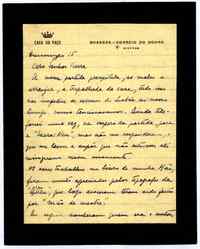 Pasta: 09771.006Assunto: Pedido para agradecer a Câmara Reis o envio de provas.Remetente: Nogueira de BritoDestinatário: Alexandre VieiraData: c. 1933Fundo: Alberto PedrosoTipo Documental: Correspondencia Página(s): 2