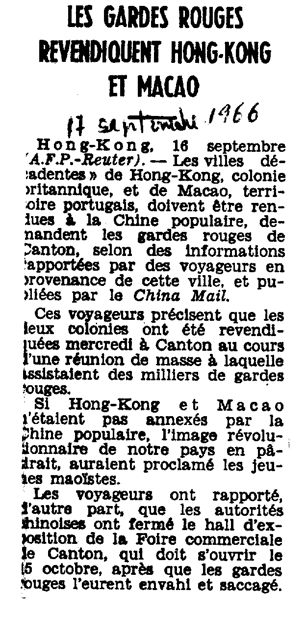 A partir de 1949, as novas autoridades da China comunista denunciaram este tratado desigual, mas não tomaram, no imediato, quaisquer medidas concretas no sentido de acabar com o domínio português. Contudo, a 3 de Dezembro de 1966, deu-se o chamado movimento 1-2-3, em que populares chineses, influenciados pela Revolução Cultural de Mao Zedong, provocaram fortes distúrbios em protesto contra a presença portuguesa. No rescaldo de 11 mortos e cerca de 200 feridos, as autoridades de Macau e da República Popular da China chegaram a acordo no dia 29 de Janeiro de 1967, culminando com o pedido de desculpas feito pelo Governo de Macau perante a comunidade chinesa. Este acordo fez também com que Portugal renunciasse à ocupação perpétua sobre Macau e reconhecesse o poder e o controlo de facto dos chineses sobre o território.