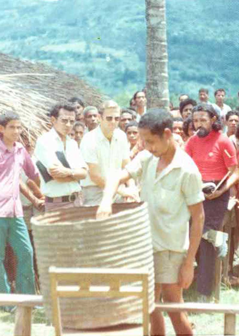 Conferência de imprensa conjunta da UDT e da FRETILIN. Da esquerda para a direita: Moisés do Amaral, Abílio Araújo, Roque Rodrigues