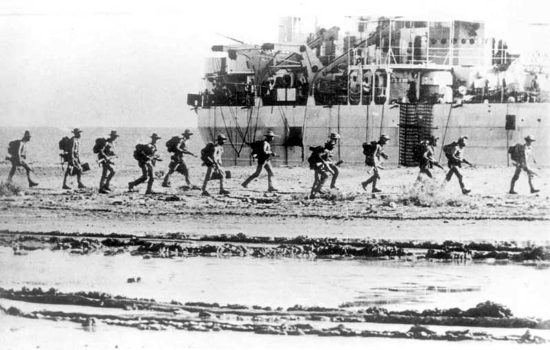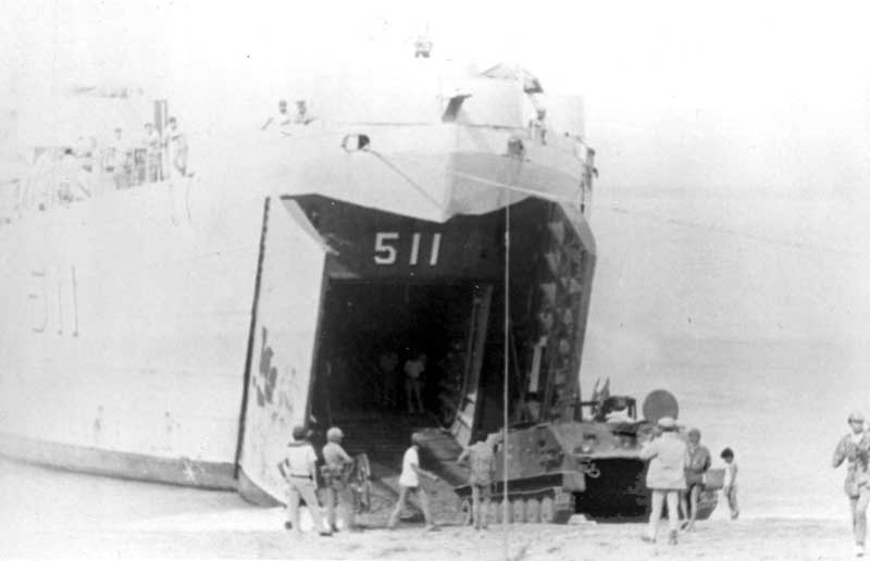 Desembarque de blindados indonésios em Timor-Leste durante a invasão.