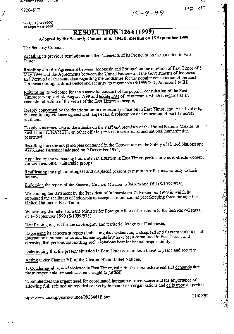 Portugal cortou relações com a Indonésia e recorreu à ONU, que em sucessivas resoluções condenou a invasão. Seguiu-se uma longa resistência do povo timorense à sangrenta ocupação estrangeira. A 30 de Agosto de 1999, na sequência de um referendo promovido pelas Nações Unidas, os timorenses votaram por esmagadora maioria pela independência, pondo fim a 24 anos de ocupação indonésia. A 28 de Setembro de 1999, Portugal (que à luz do direito internacional ainda era a potência administrante) e a Indonésia transferiram a soberania de Timor-Leste para a ONU, e após mais um período de forte instabilidade instigada pela actuação de milícias pró-Indonésia, no dia 20 de Maio de 2002, foi restaurada a independência e o poder formalmente entregue ao primeiro Governo Constitucional de Timor-Leste.