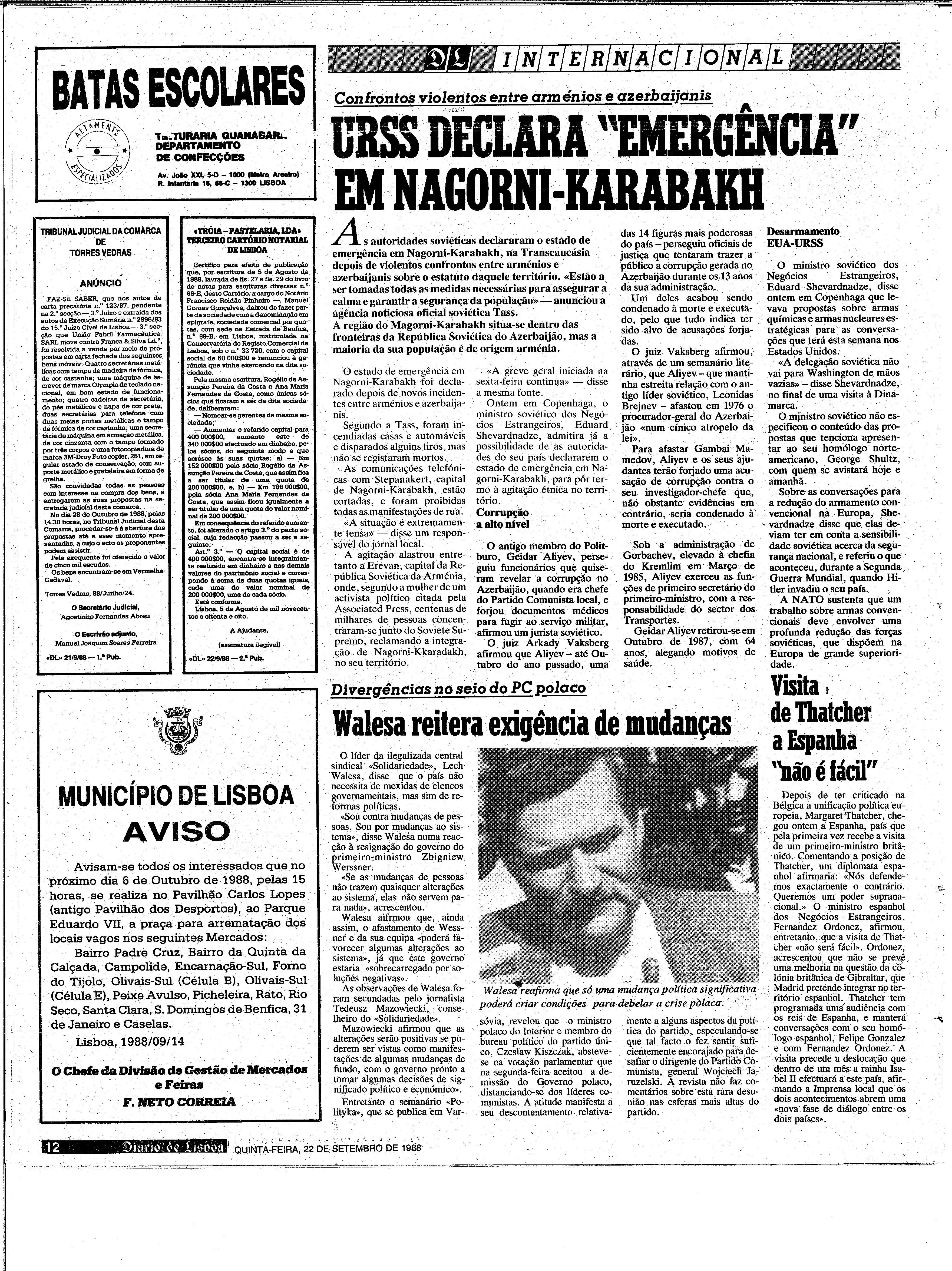 (1988), "Diário de Lisboa", nº 22772, Ano 68, Quinta, 22 de Setembro de 1988, Fundação Mário Soares / DRR - Documentos Ruella Ramos, Disponível HTTP: http://hdl.handle.net/11002/fms_dc_872 (2025-12-25)