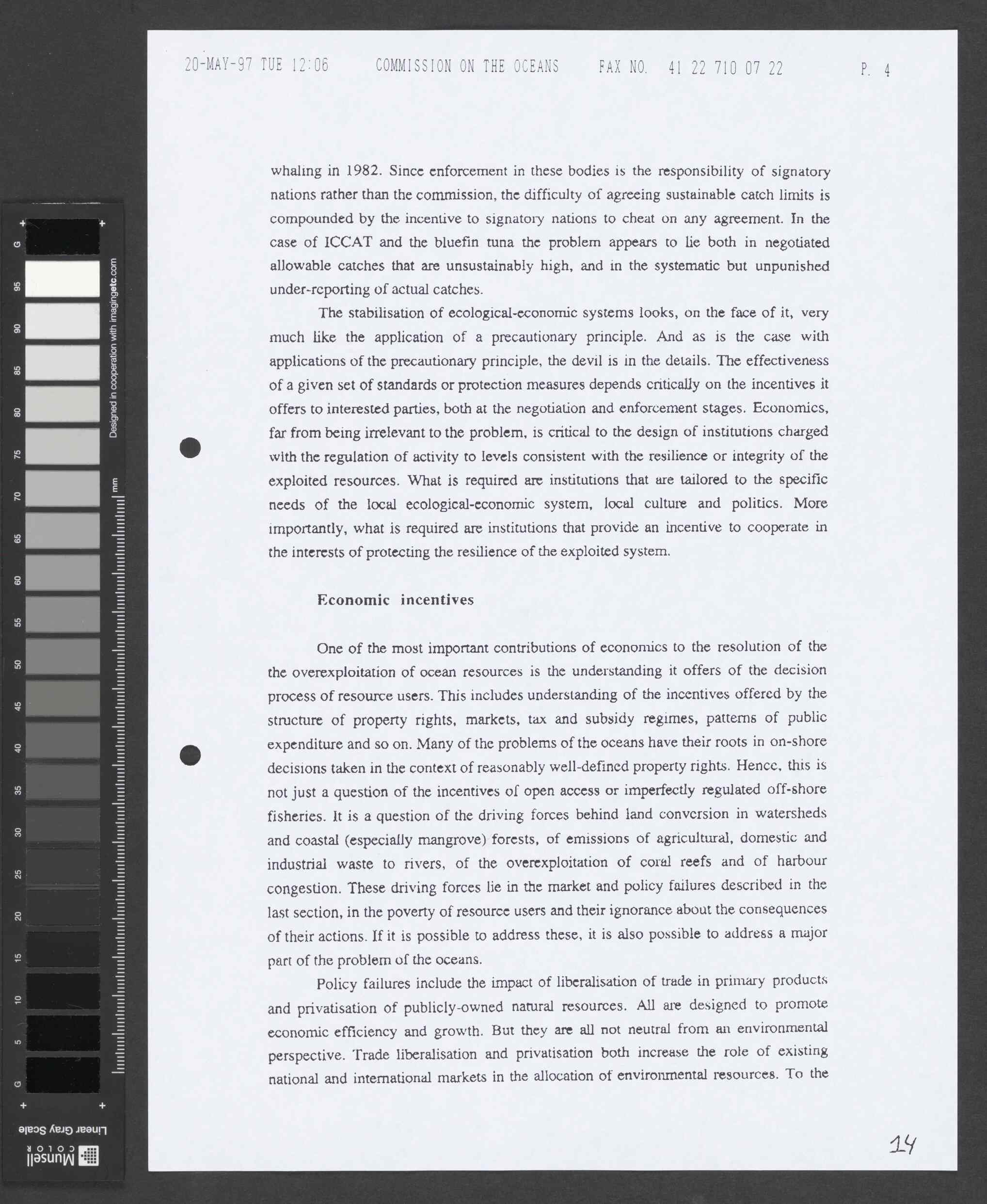 Instituição: Fundação Mário Soares e Maria Barroso Pasta: 10219.018.001Título: The Economics of Ocean ResourcesAssunto: Documento de Charles Perrings intitulado "The Economics of Ocean Resources", preparado para a Comissão Mundial Independente para os Oceanos.Data: c. terça, 20 de maio de 1997Fundo: Comissão Mundial Independente para os OceanosTipo Documental: DocumentosLíngua do Documento: InglêsDireitos: A publicação, total ou parcial, deste documento exige prévia autorização da entidade detentora.