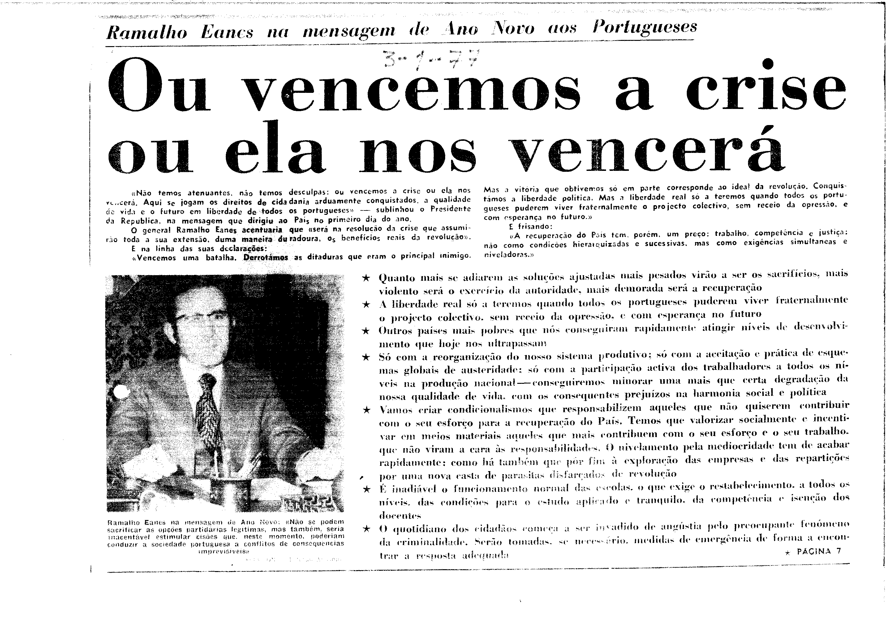 Instituição: Fundação Mário Soares e Maria Barroso Pasta: 00767.002Assunto: PR Ramalho EanesData: 1977Fundo: AMS - Arquivo Mário SoaresTipo Documental: IMPRENSADireitos: A publicação, total ou parcial, deste documento exige prévia autorização da entidade detentora.