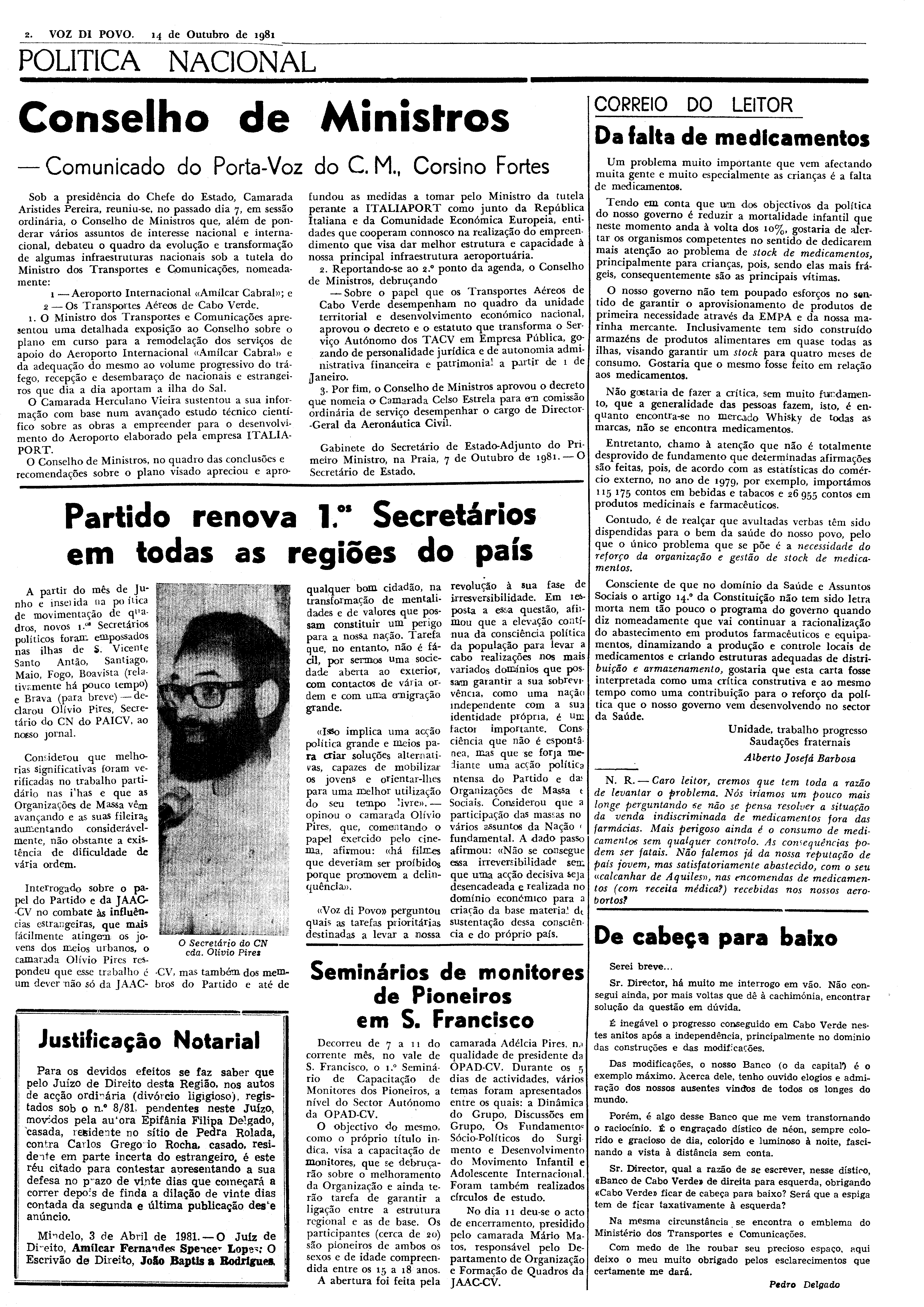 (1981), "Voz di Povo", nº 275, Ano VI, Quarta, 14 de Outubro de 1981, Fundação Mário Soares / Arquivo Mário Pinto de Andrade, Disponível HTTP: http://hdl.handle.net/11002/fms_dc_85534 (2025-12-26)