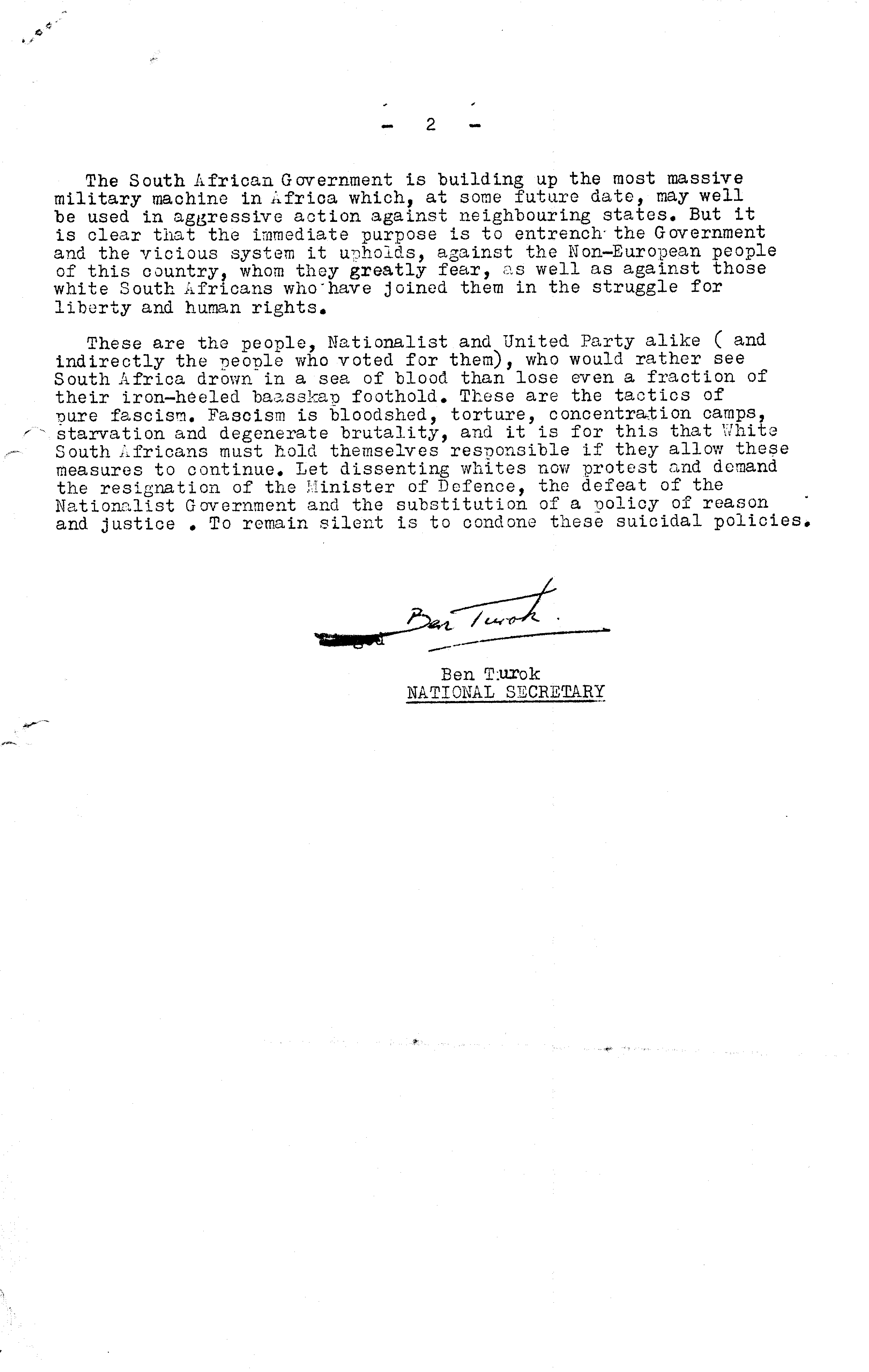 Instituição: Fundação Mário Soares e Maria Barroso Pasta: 04617.081.028Título: Declaração à imprensa do South African Congress of DemocratsAssunto: Declaração à imprensa do South African Congress of Democrats alertando para a escala de militarização que o governo sul-africano pretende levar a cabo tendo como pretexto a acção dos movimentos de libertação, esclarecendo que o propósito imediato de tal aparato militar seria o de defender o governo e o sistema de apartheid do povo sul-africano.Data: Terça, 13 de Março de 1962Observações: Doc. incluído no dossier intitulado Correspondência dactilografada 1962 (estrangeiro).Fundo: DAC - Documentos Amílcar CabralTipo Documental: DocumentosDireitos: A publicação, total ou parcial, deste documento exige prévia autorização da entidade detentora.