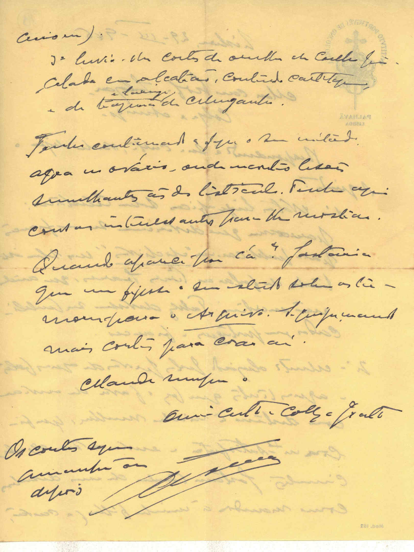 Instituição: Casa Museu Abel Salazar Pasta: 05402.016Assunto: Papel timbrado do Instituto Português de Oncologia / Palhavã / Lisboa; refere-se a Celestino, a Pires Soares, aos «Archives»; agradece pinturas de Abel Salazar; envia cortes (amostras) para corarRemetente: Marck AthiasDestinatário: Abel SalazarData: Sexta, 29 de Março de 1946Observações: Imagens 03 e 04: Transcrição da carta / Casa-Museu Abel SalazarFundo: DSZ - Documentos Abel SalazarTipo Documental: CorrespondenciaDireitos: A publicação, total ou parcial, deste documento exige prévia autorização da entidade detentora.