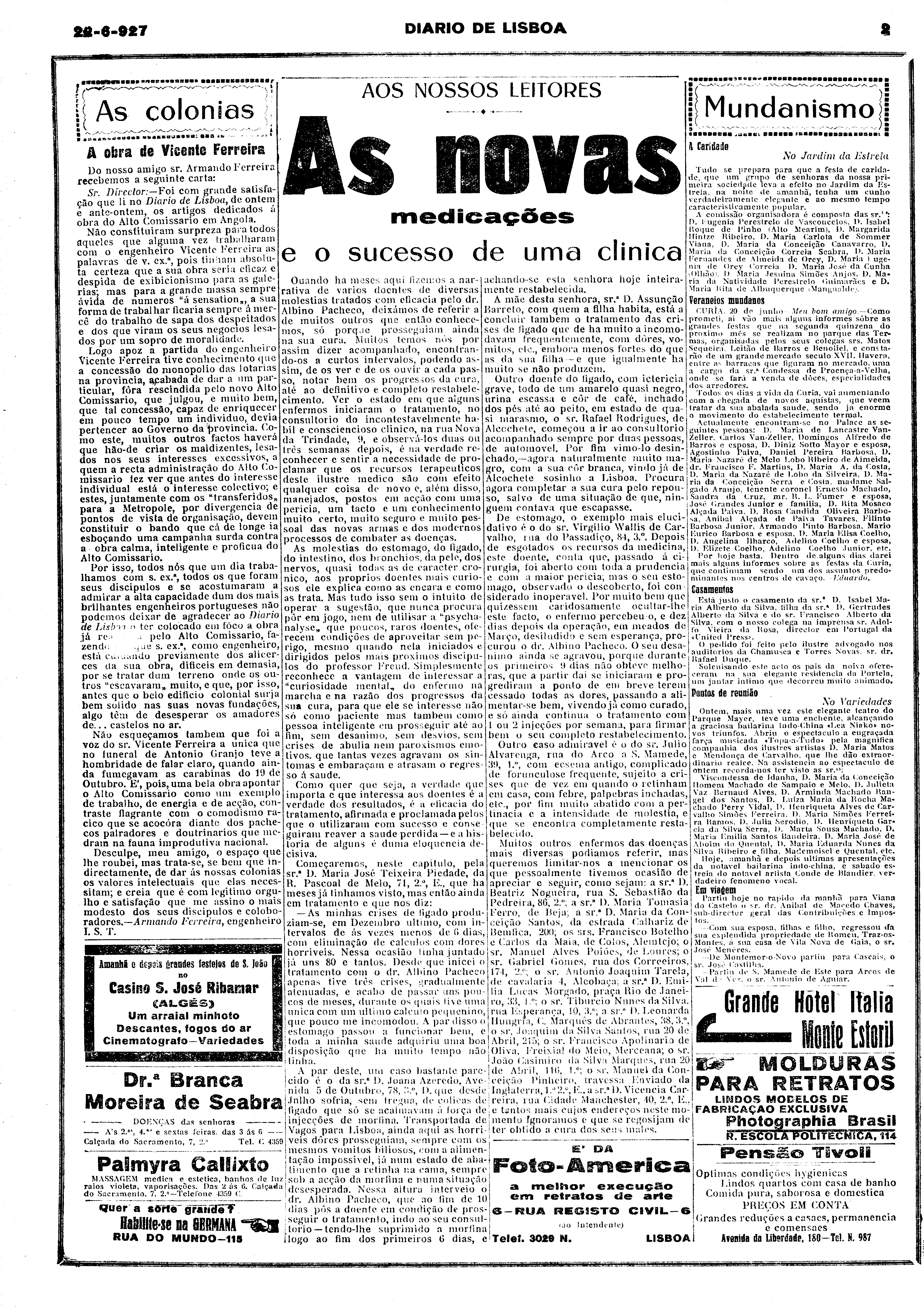(1927), "Diário de Lisboa", nº 1901, Ano 7, Quarta, 22 de Junho de 1927, Fundação Mário Soares / DRR - Documentos Ruella Ramos, Disponível HTTP: http://hdl.handle.net/11002/fms_dc_30989 (2025-12-26)