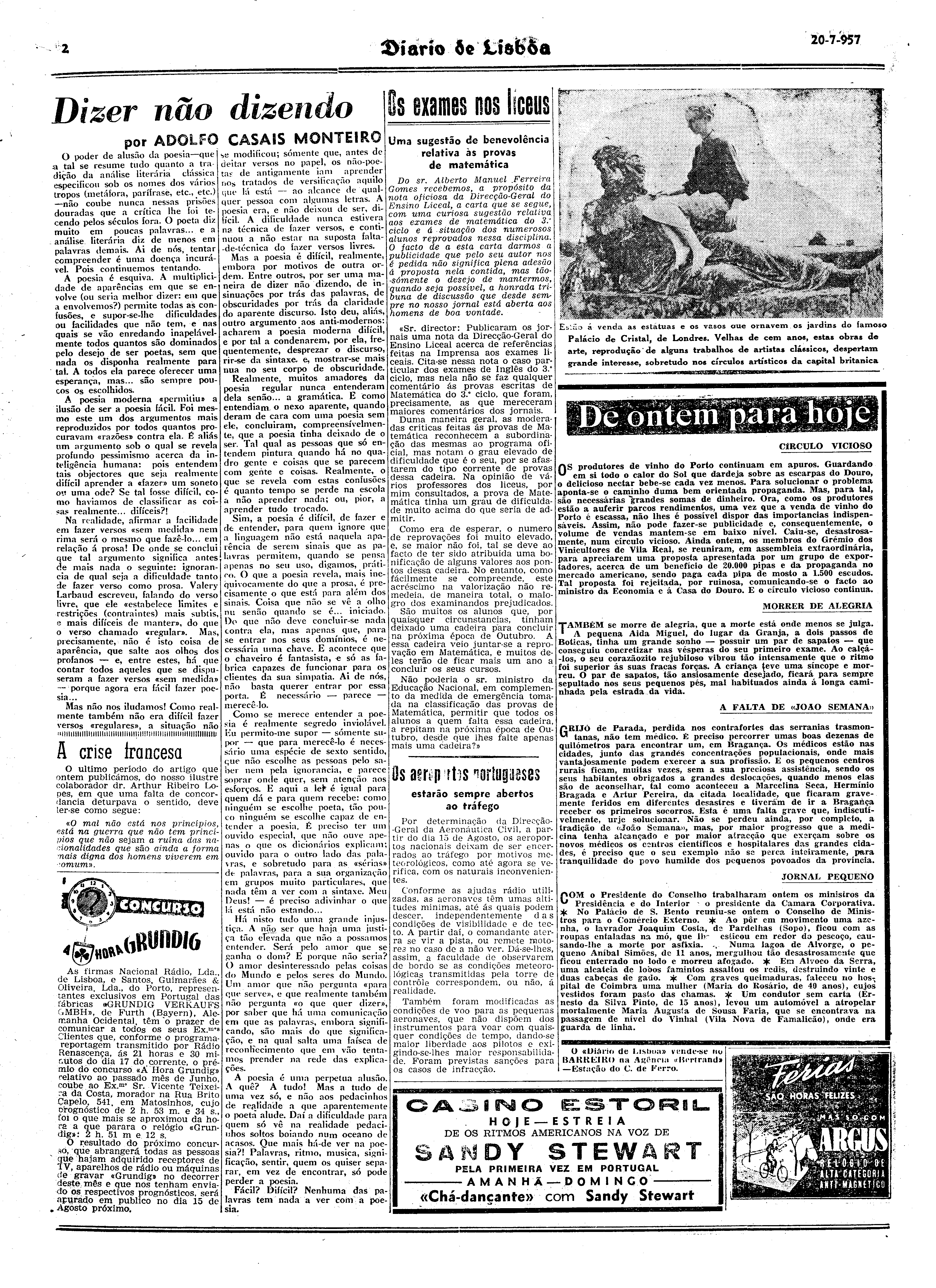 (1957), "Diário de Lisboa", nº 12435, Ano 37, Sábado, 20 de Julho de 1957, Fundação Mário Soares / DRR - Documentos Ruella Ramos, Disponível HTTP: http://hdl.handle.net/11002/fms_dc_17997 (2025-12-24)