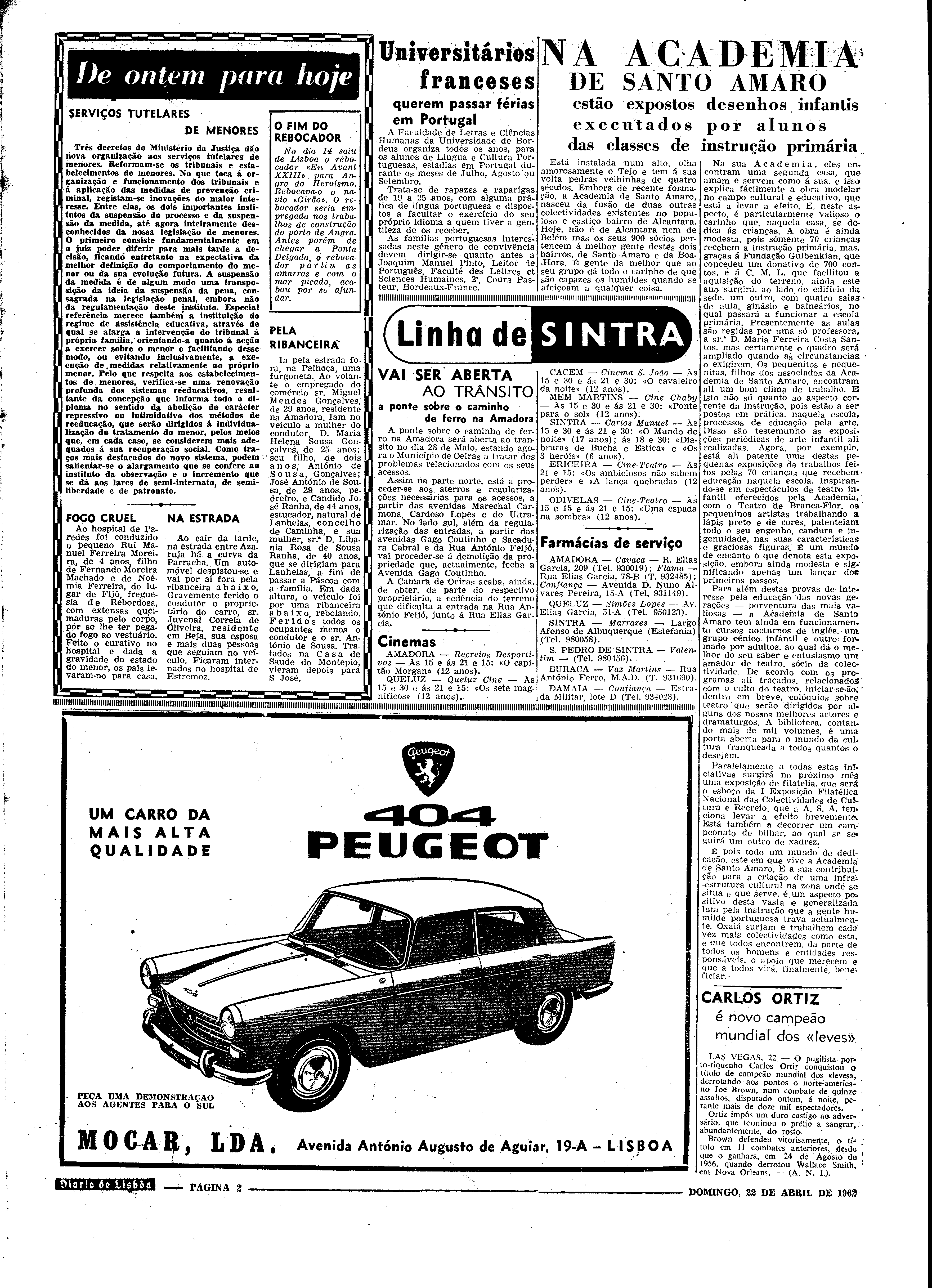 Instituição: Fundação Mário Soares e Maria Barroso Pasta: 06545.083.17778Título: Diário de LisboaNúmero: 14137Ano: 42Data: Domingo, 22 de Abril de 1962Directores: Director: Norberto Lopes; Director Adjunto: Mário NevesEdição: 2ª ediçãoFundo: DRR - Documentos Ruella RamosTipo Documental: IMPRENSADireitos: A publicação, total ou parcial, deste documento exige prévia autorização da entidade detentora.