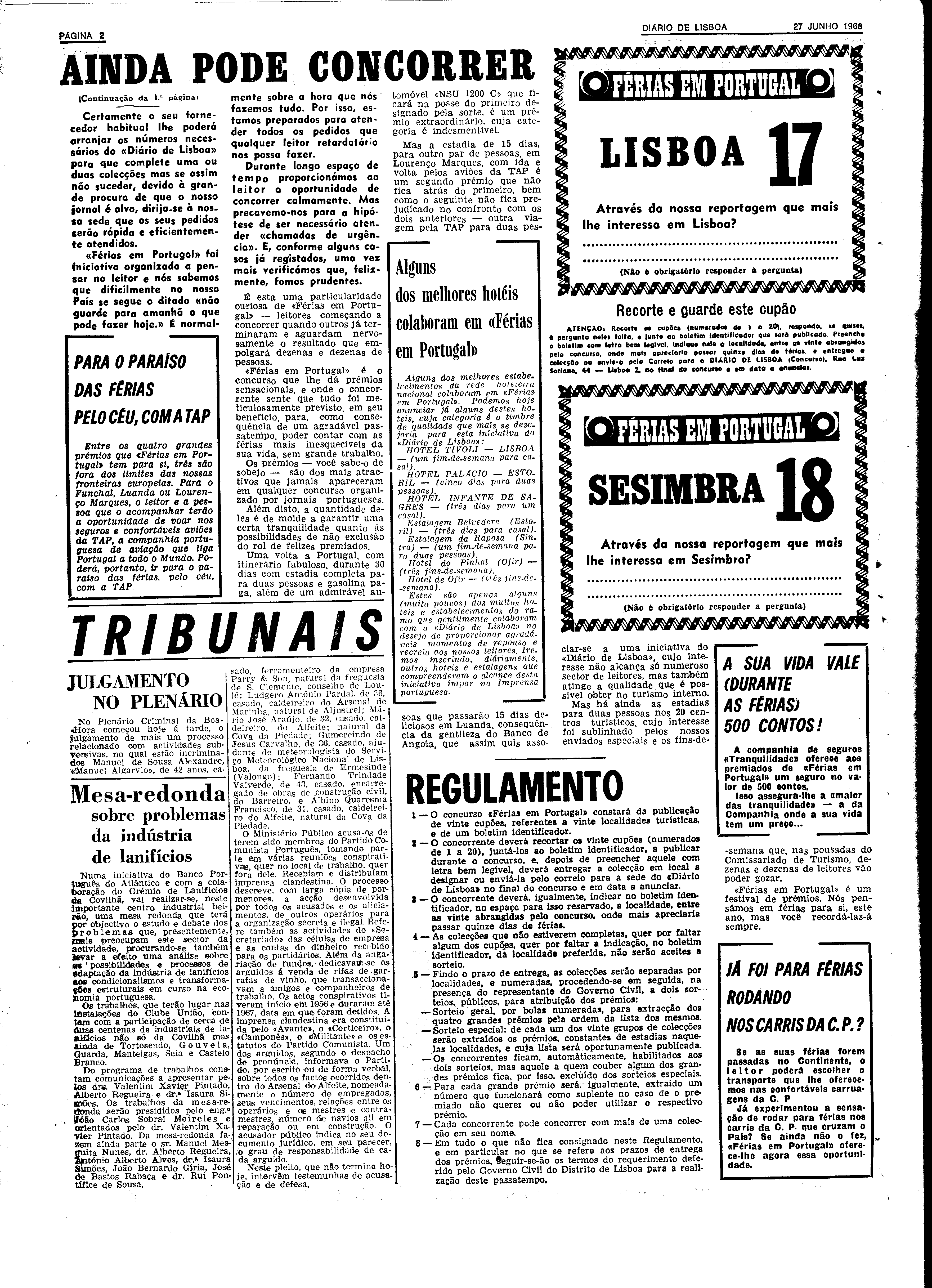 (1968), "Diário de Lisboa", nº 16351, Ano 48, Quinta, 27 de Junho de 1968, Fundação Mário Soares / DRR - Documentos Ruella Ramos, Disponível HTTP: http://hdl.handle.net/11002/fms_dc_8490 (2025-12-27)