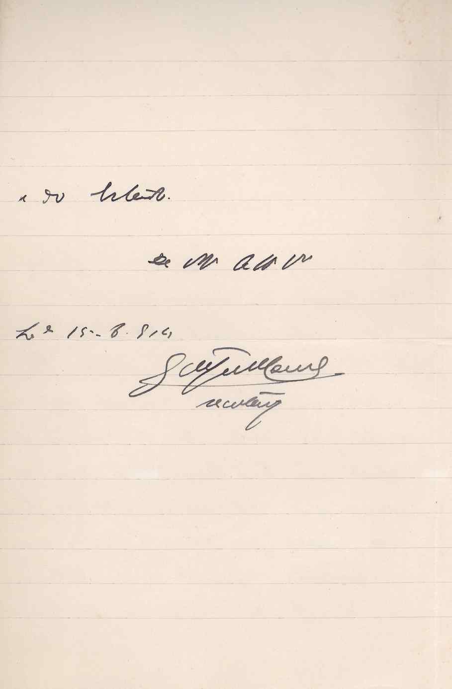 Instituição: Fundação Mário Soares e Maria Barroso Pasta: 06677.249Remetente: Secretário do Governo Civil de LisboaData: Sábado, 15 de Agosto de 1914Fundo: Bernardino MachadoTipo Documental: CorrespondenciaDireitos: A publicação, total ou parcial, deste documento exige prévia autorização da entidade detentora.
