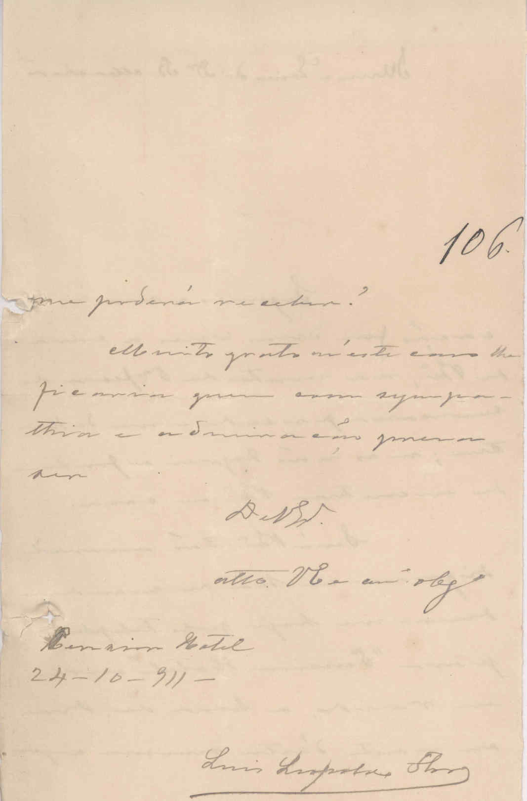 Instituição: Fundação Mário Soares e Maria Barroso Pasta: 06711.110Assunto: Pedido de indicação de uma data para ser recebido por Bernardino Machado.Remetente: Luís Leopoldo FloresDestinatário: Bernardino MachadoData: Terça, 24 de Outubro de 1911Fundo: DBG - Documentos Bernardino MachadoTipo Documental: CorrespondenciaDireitos: A publicação, total ou parcial, deste documento exige prévia autorização da entidade detentora.