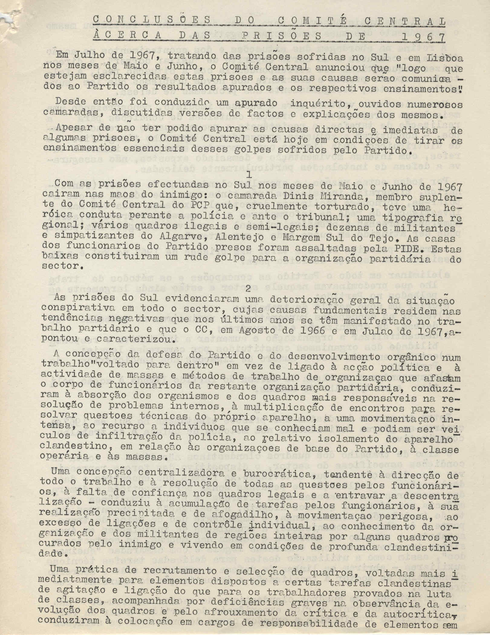 (1968), "Conclusões do Comité Central àcerca das prisões de 1967", Fundação Mário Soares / Isabel do Carmo/Carlos Antunes, Disponível HTTP: http://hdl.handle.net/11002/fms_dc_150544 (2025-12-27)
