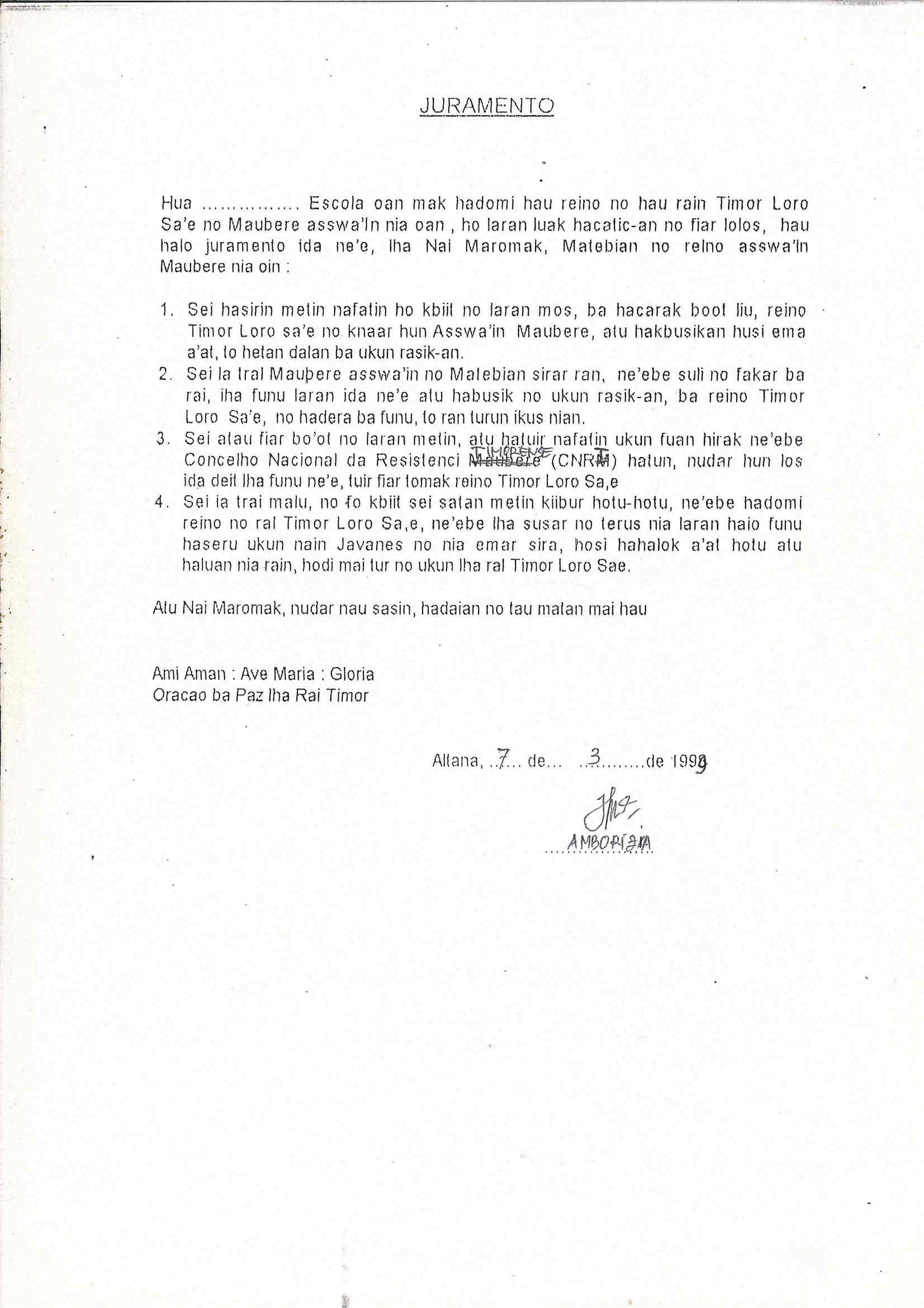 (1998), "Juramento", Fundação Mário Soares / Arquivo da Resistência Timorense - RENETIL, Disponível HTTP: http://hdl.handle.net/11002/fms_dc_137167 (2025-12-25)