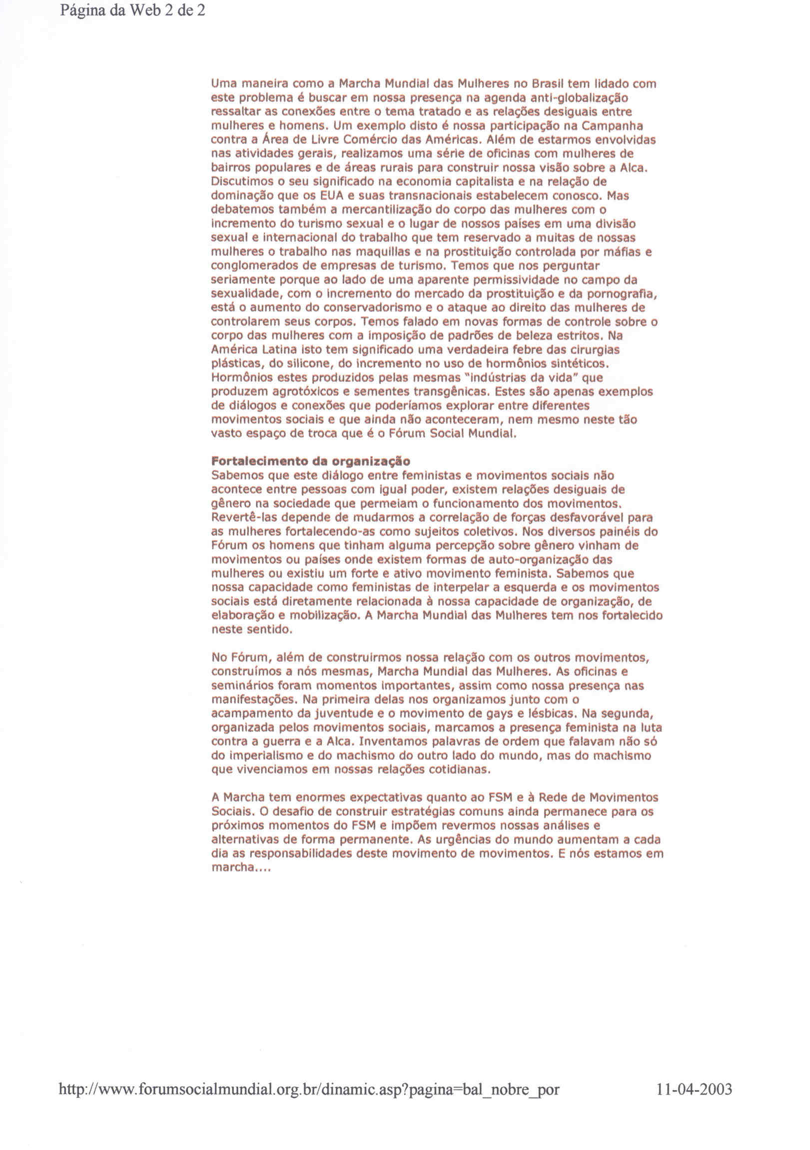 Miriam Nobre (2003), "A Marcha Mundial das Mulheres construindo o Fórum Social Mundial - Fórum Social Mundial", 2003, Fundação Mário Soares / UMAR, Disponível HTTP: http://hdl.handle.net/11002/fms_dc_155106 (2025-12-26)