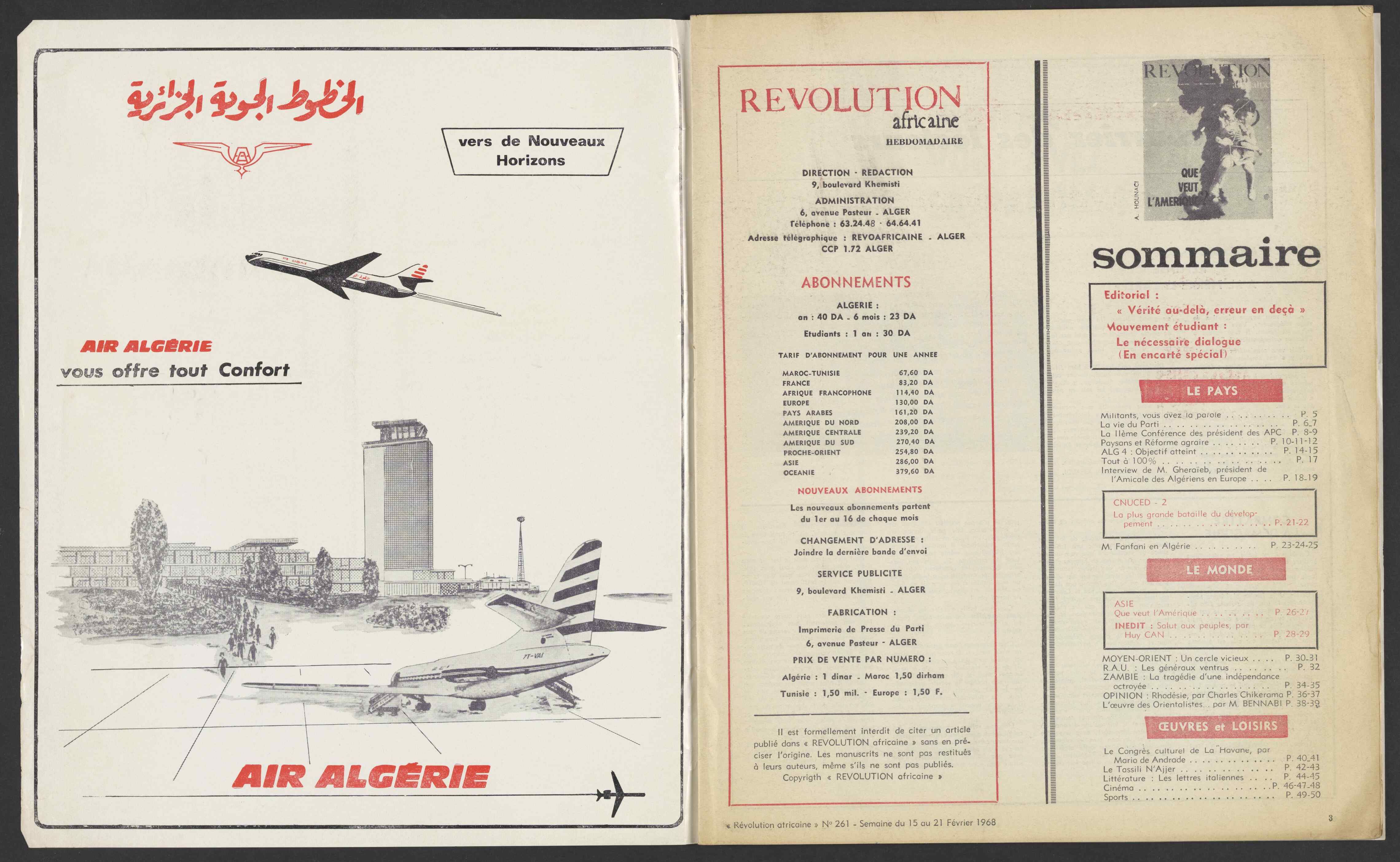 (1968-1968), "Revolution africaine", nº 261, Quinta, 15 de Fevereiro de 1968 - Quarta, 21 de Fevereiro de 1968, Fundação Mário Soares / Arquivo Mário Pinto de Andrade, Disponível HTTP: http://www.casacomum.org/cc/visualizador?pasta=10202.001.002 (2025-12-27)