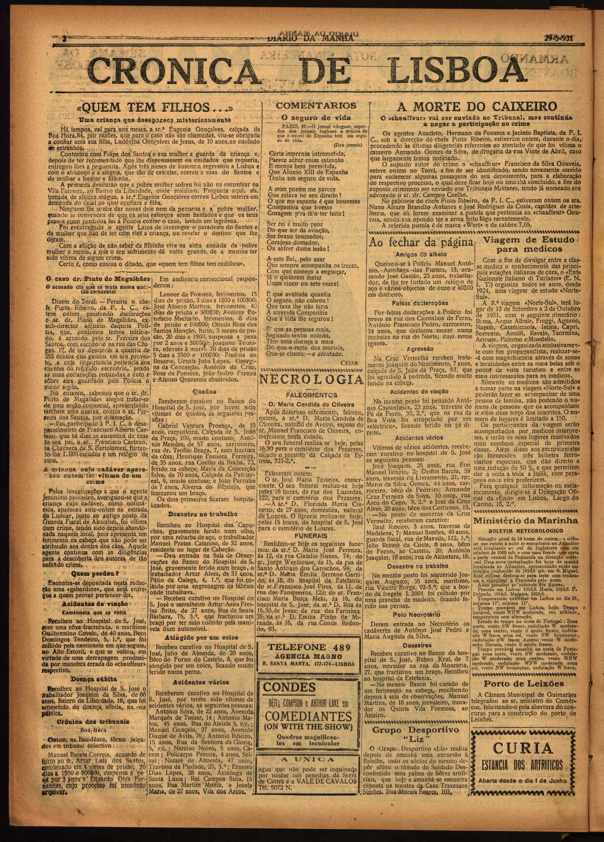 Pasta: 10435.028Título: Diário da ManhãNúmero: 55Ano: IData: Sexta, 29 de Maio de 1931Directores: Garcia PulidoFundo: Garcia PulidoTipo Documental: IMPRENSADireitos: A publicação, total ou parcial, deste documento exige prévia autorização da entidade detentora.