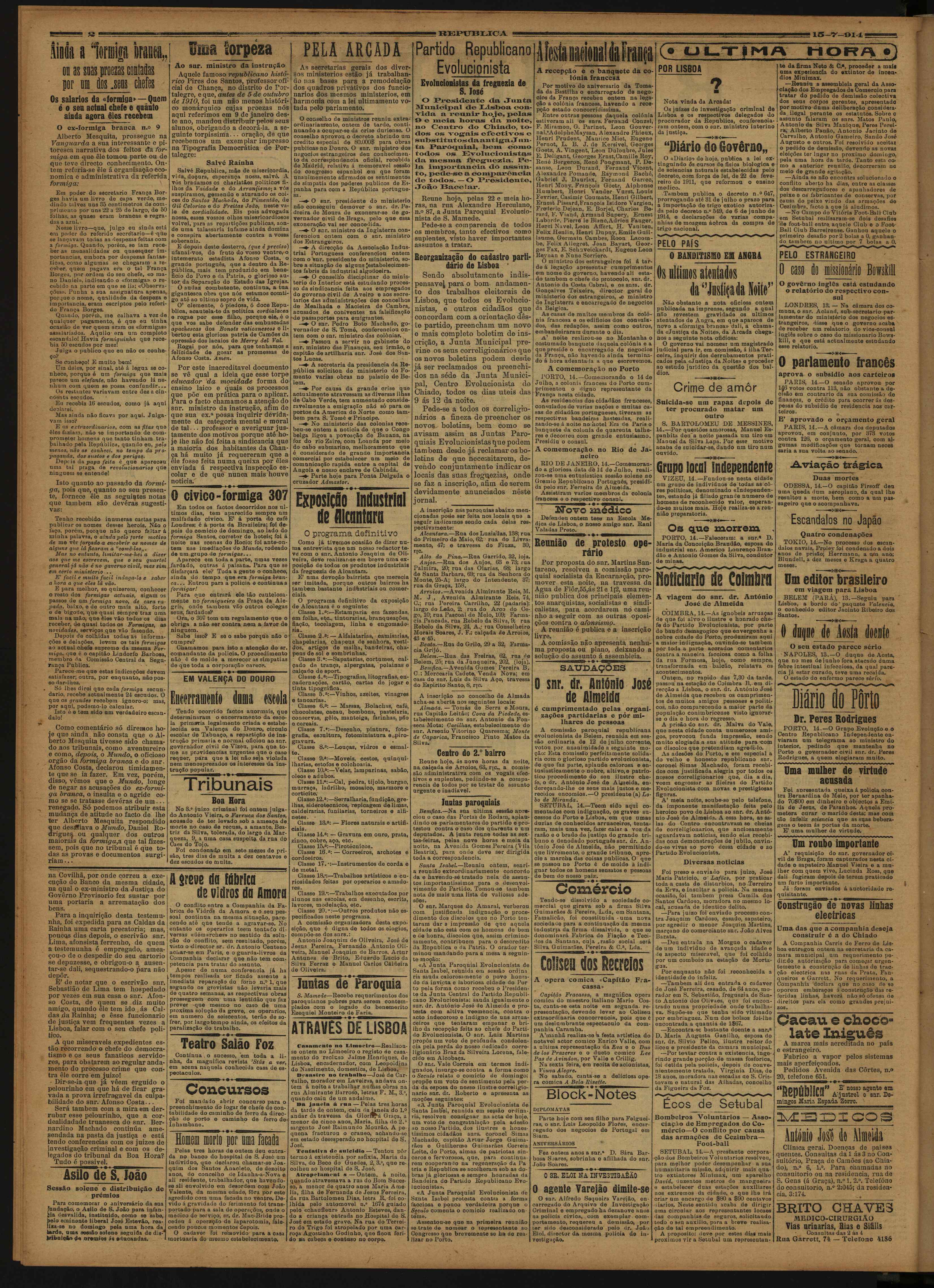 (1914), "República", nº 1260, Ano IV, Quarta, 15 de Julho de 1914, Fundação Mário Soares / Vasco Vieira de Almeida, Disponível HTTP: http://www.casacomum.org/cc/visualizador?pasta=10446.015 (2025-12-25)