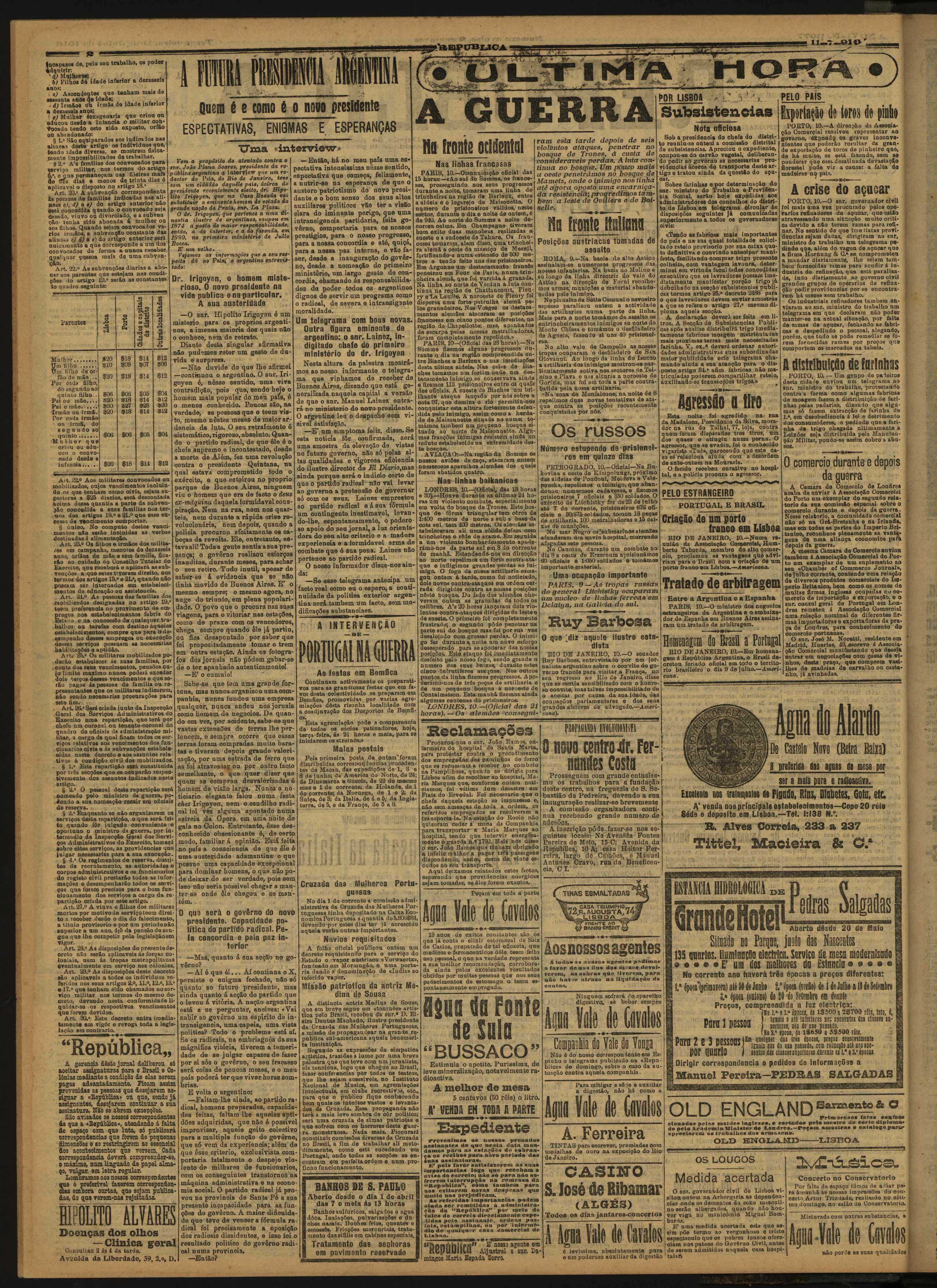(1916), "República", nº 1977, Ano VI, Terça, 11 de Julho de 1916, Fundação Mário Soares / Vasco Vieira de Almeida, Disponível HTTP: http://www.casacomum.org/cc/visualizador?pasta=10450.011 (2025-12-25)