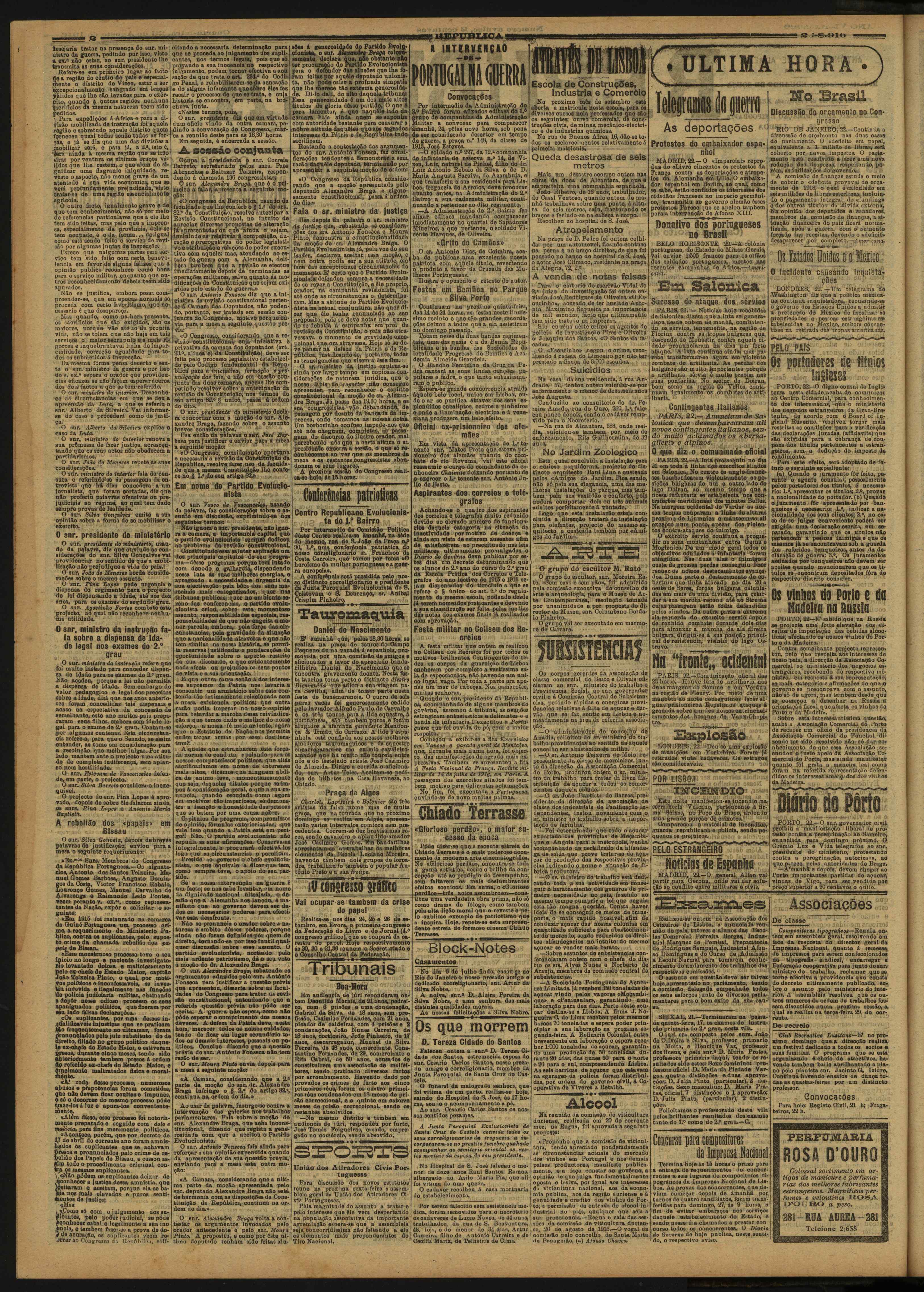 (1916), "República", nº 2020, Ano VI, Quarta, 23 de Agosto de 1916, Fundação Mário Soares / Vasco Vieira de Almeida, Disponível HTTP: http://www.casacomum.org/cc/visualizador?pasta=10450.051 (2025-12-25)
