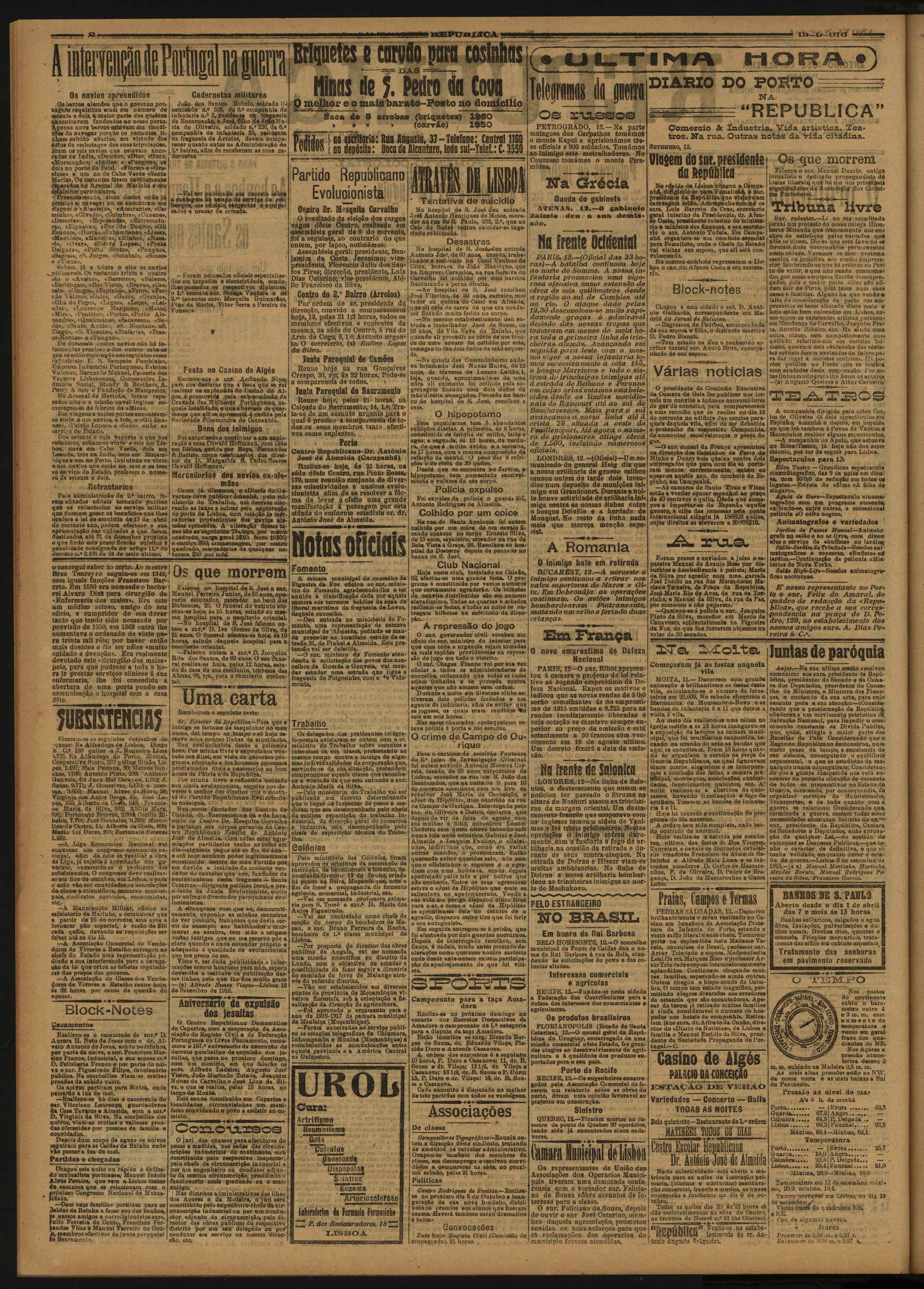 (1916), "República", nº 2041, Ano VI, Quarta, 13 de Setembro de 1916, Fundação Mário Soares / Vasco Vieira de Almeida, Disponível HTTP: http://www.casacomum.org/cc/visualizador?pasta=10450.072 (2025-12-25)
