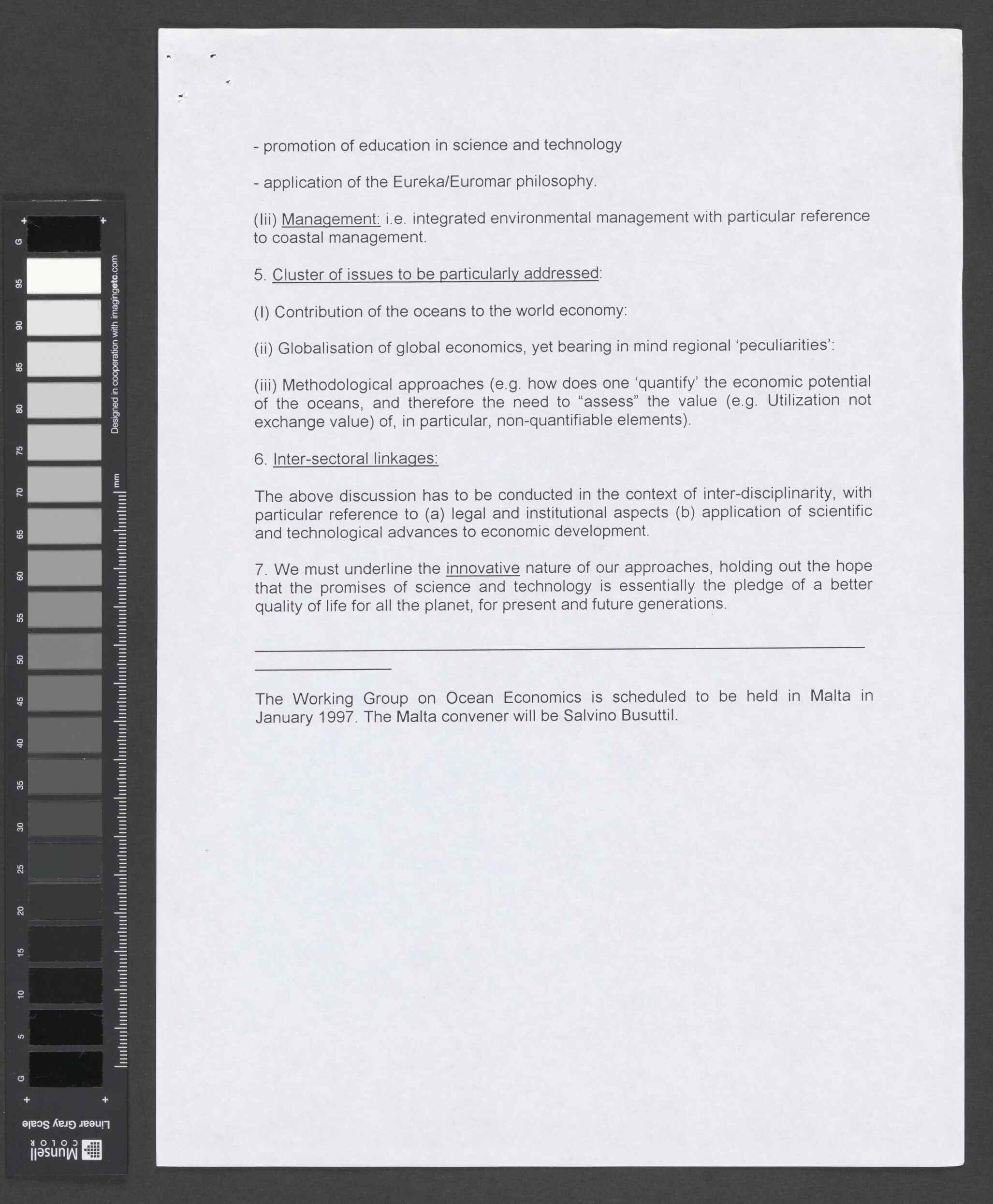 Instituição: Fundação Mário Soares e Maria Barroso Pasta: 11722.002.012Título: Ocean EconomicsAssunto: Observações por Salvino Busuttil no âmbito do grupo de estudo - "Estrutura Jurídica e Institucional para a Utilização e Proteção dos seus Recursos".Data: terça, 2 de julho de 1996Fundo: Comissão Mundial Independente para os OceanosTipo Documental: DocumentosLíngua do Documento: InglêsDireitos: A publicação, total ou parcial, deste documento exige prévia autorização da entidade detentora.