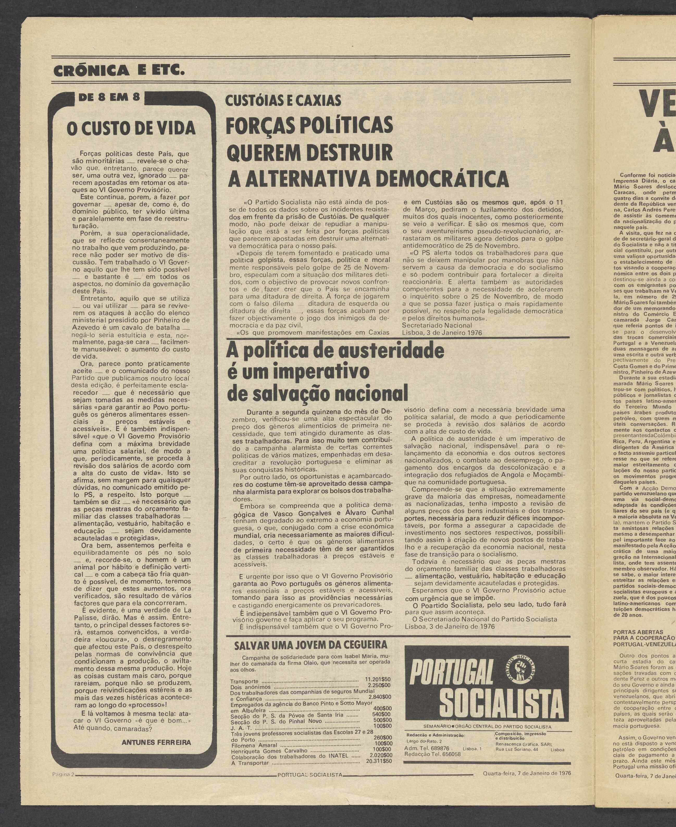 (1976), "Portugal Socialista. Órgão Central do Partido Socialista", nº 77, Ano IX, quarta, 7 de janeiro de 1976, Lisboa, Fundação Mário Soares / Arquivo Histórico do Partido Socialista, Disponível HTTP: http://www.casacomum.org/cc/visualizador?pasta=12266.001 (2025-12-25)
