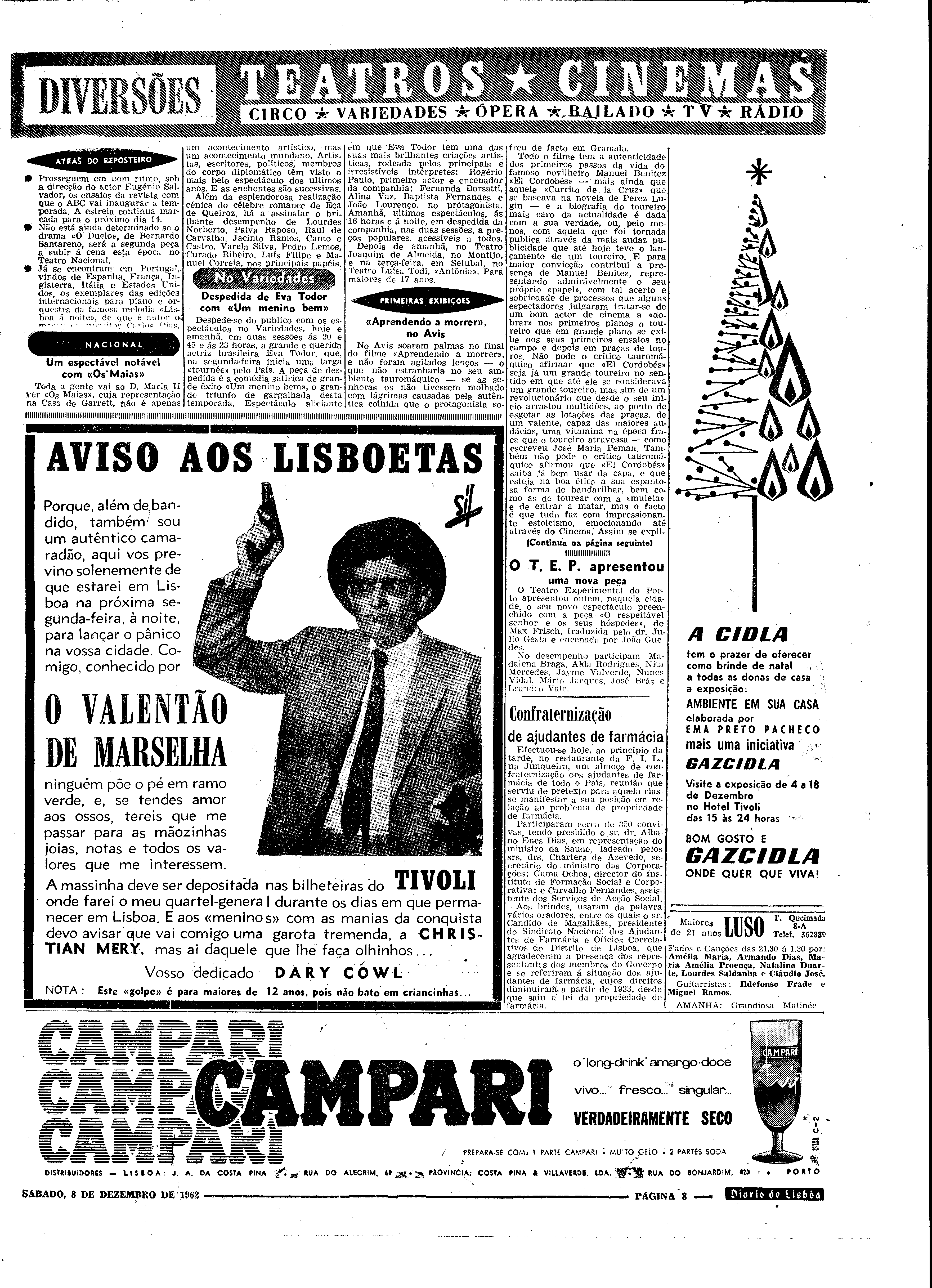 (1962), "Diário de Lisboa", nº 14363, Ano 42, Sábado, 8 de Dezembro de 1962, Fundação Mário Soares / DRR - Documentos Ruella Ramos, Disponível HTTP: http://hdl.handle.net/11002/fms_dc_15569 (2025-12-25)