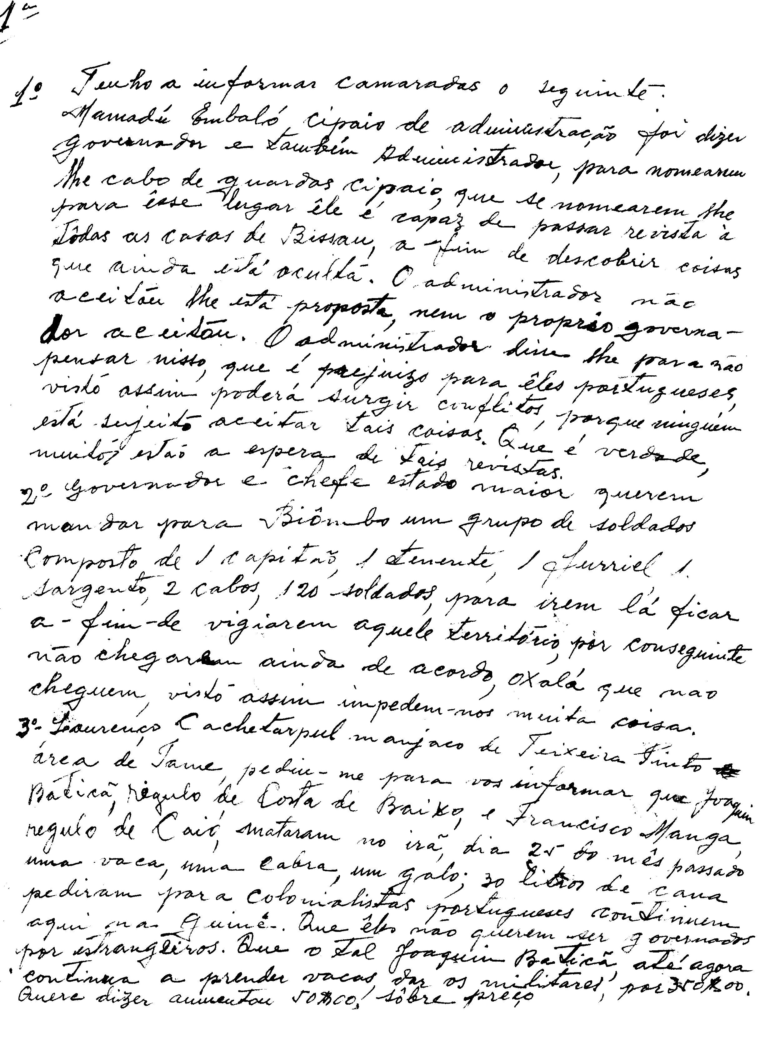 Instituição: Fundação Mário Soares e Maria Barroso Pasta: 07062.035.013Título: Relatório com informações sobre a situação em BissauAssunto: Relatório assinado por Saná Camara contendo informações sobre as movimentações da PIDE, o desembarque de material de guerra para o quartel militar português e a situação política em Bissau.Data: Quarta, 11 de Abril de 1962 - Quarta, 18 de Abril de 1962Observações: Doc. incluído no dossier intitulado Clandestinidade Bissau e outros documentos.Fundo: DAC - Documentos Amílcar CabralTipo Documental: DocumentosDireitos: A publicação, total ou parcial, deste documento exige prévia autorização da entidade detentora.