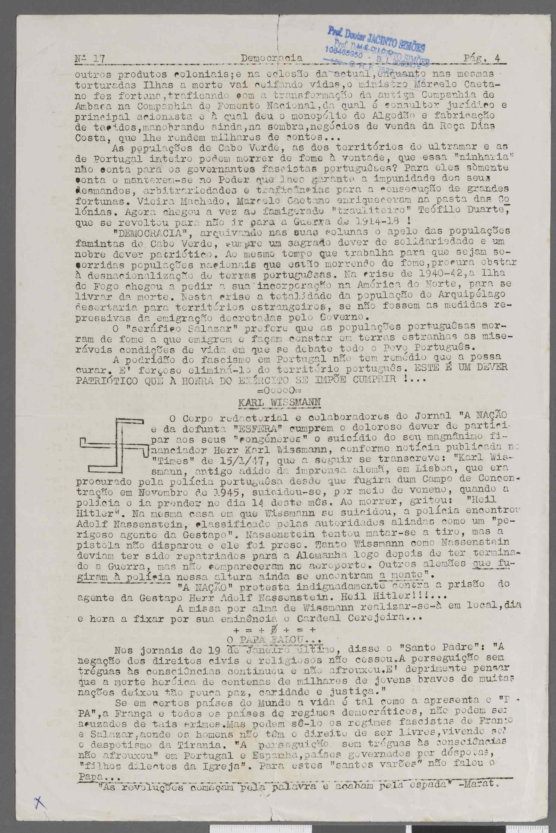 (1947), "Democracia", nº 17, Quinta, 6 de Fevereiro de 1947, Fundação Mário Soares / DJS - Documentos Jacinto Simões, Disponível HTTP: http://hdl.handle.net/11002/fms_dc_152309 (2025-12-28)