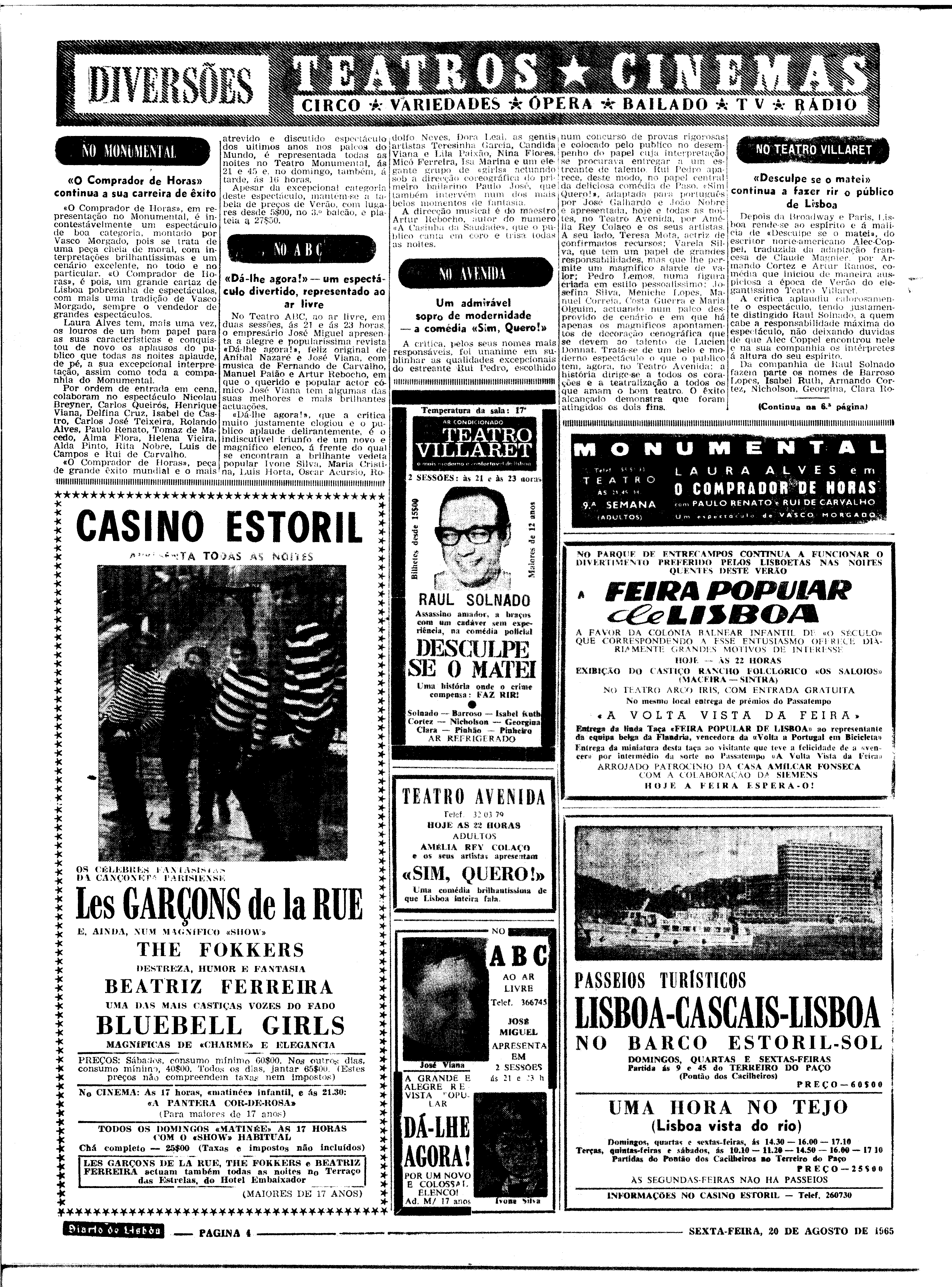 Instituição: Fundação Mário Soares e Maria Barroso Pasta: 06562.100.19779Título: Diário de LisboaNúmero: 15330Ano: 45Data: Sexta, 20 de Agosto de 1965Directores: Director: Norberto Lopes; Director Adjunto: Mário NevesEdição: 2ª ediçãoObservações: Inclui supl. "Vida Económica e Financeira".Fundo: DRR - Documentos Ruella RamosTipo Documental: IMPRENSADireitos: A publicação, total ou parcial, deste documento exige prévia autorização da entidade detentora.