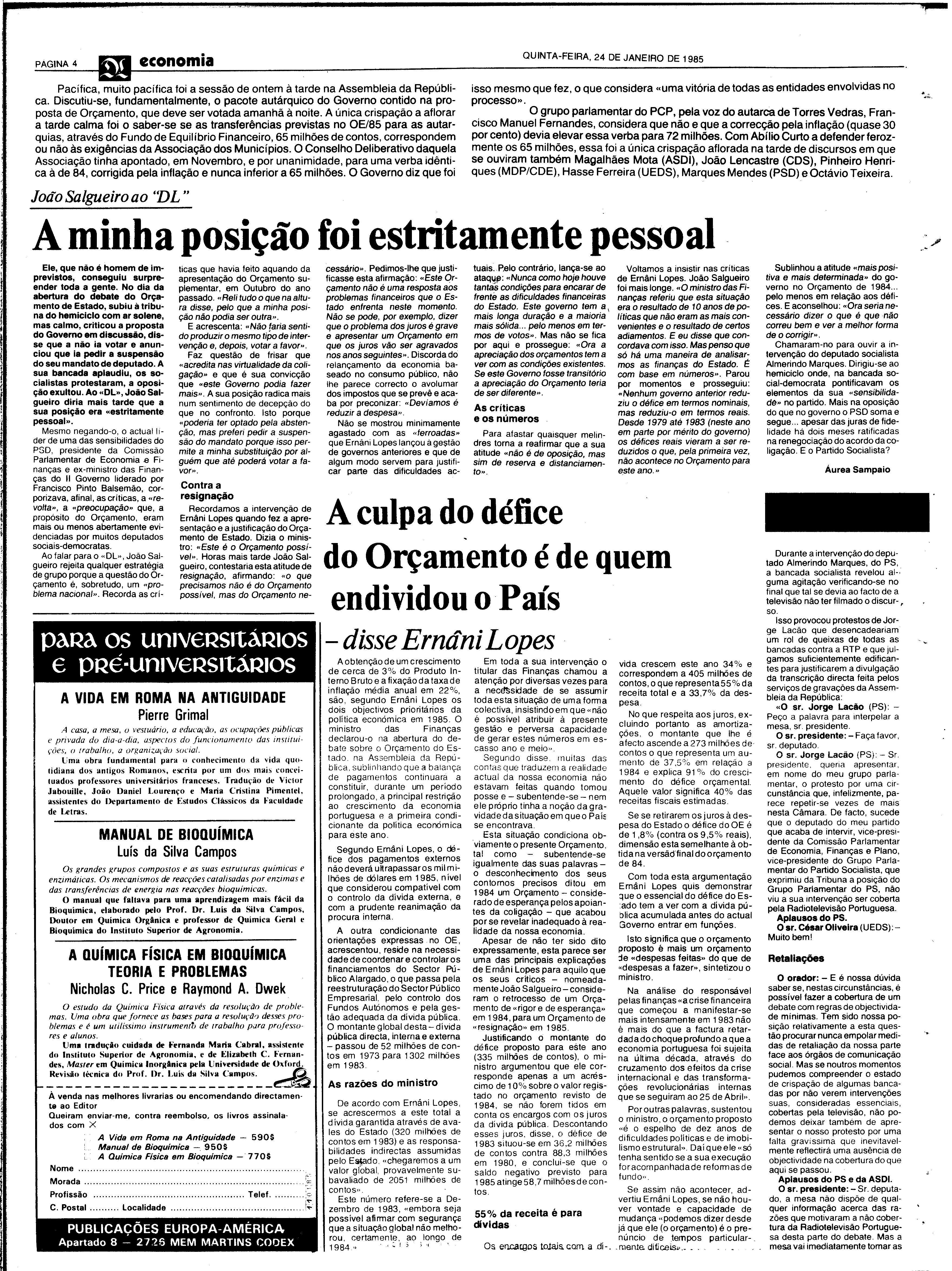 (1985), "Diário de Lisboa", nº 21667, Ano 64, Quinta, 24 de Janeiro de 1985, Fundação Mário Soares / DRR - Documentos Ruella Ramos, Disponível HTTP: http://hdl.handle.net/11002/fms_dc_2134 (2025-12-24)
