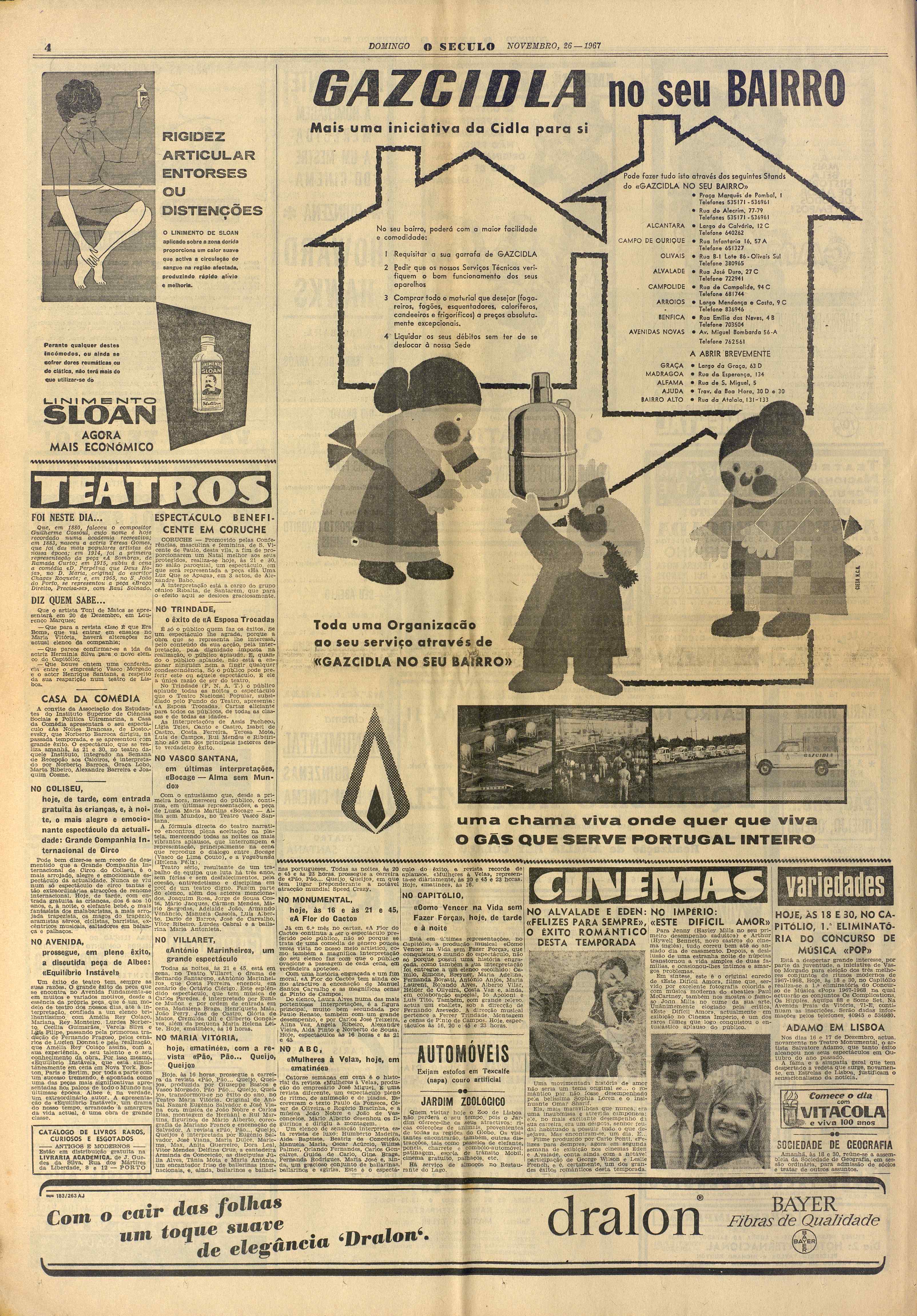 (1967), "O Século", nº 30754, Ano 87, Domingo, 26 de Novembro de 1967, Fundação Mário Soares / Isabel do Carmo/Carlos Antunes, Disponível HTTP: http://www.casacomum.org/cc/visualizador?pasta=09847.001.001 (2025-12-27)