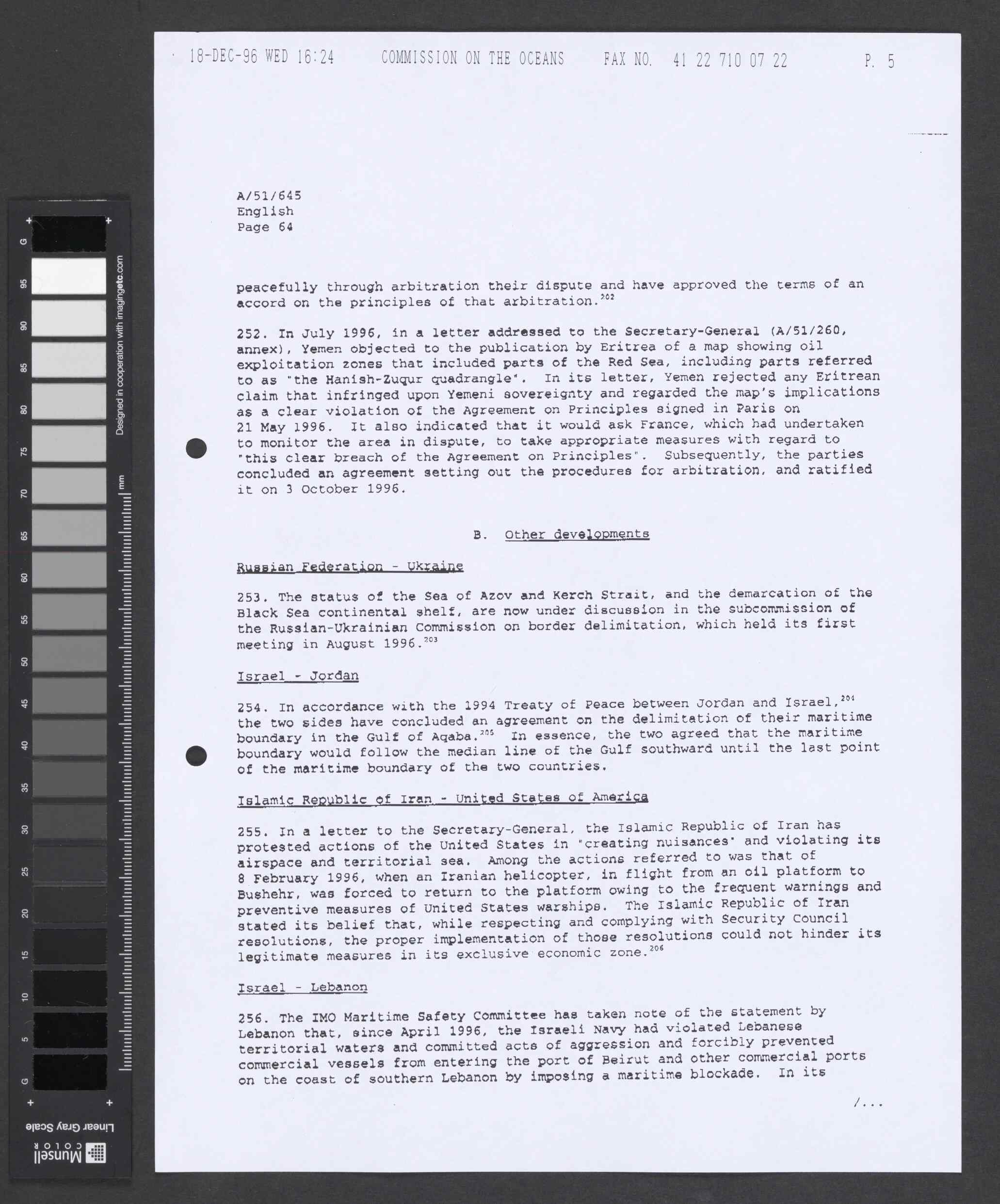 Instituição: Fundação Mário Soares e Maria Barroso Pasta: 10217.021.001Título: United Nations General Assembly. Law of the Sea. Report of the Secretary-GeneralAssunto: Relatório do secretário-geral das Nações Unidas sobre o Direito do Mar, no âmbito da sua 51ª Sessão - Agenda item 24 (a).Data: sexta, 1 de novembro de 1996Fundo: Comissão Mundial Independente para os OceanosTipo Documental: DocumentosLíngua do Documento: InglêsDireitos: A publicação, total ou parcial, deste documento exige prévia autorização da entidade detentora.