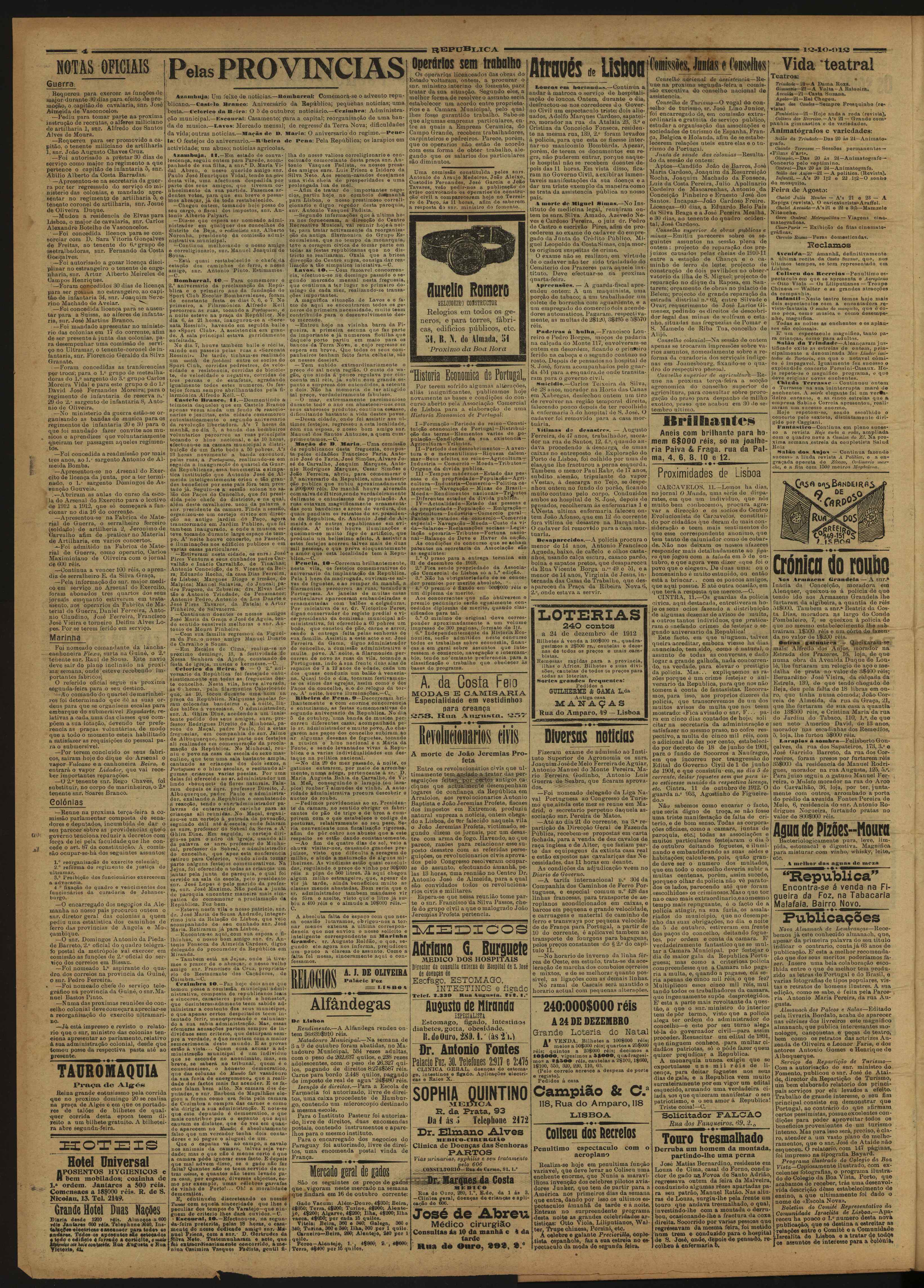 (1912), "República", nº 628, Ano II, Sábado, 12 de Outubro de 1912, Fundação Mário Soares / Vasco Vieira de Almeida, Disponível HTTP: http://www.casacomum.org/cc/visualizador?pasta=10445.012 (2025-12-25)