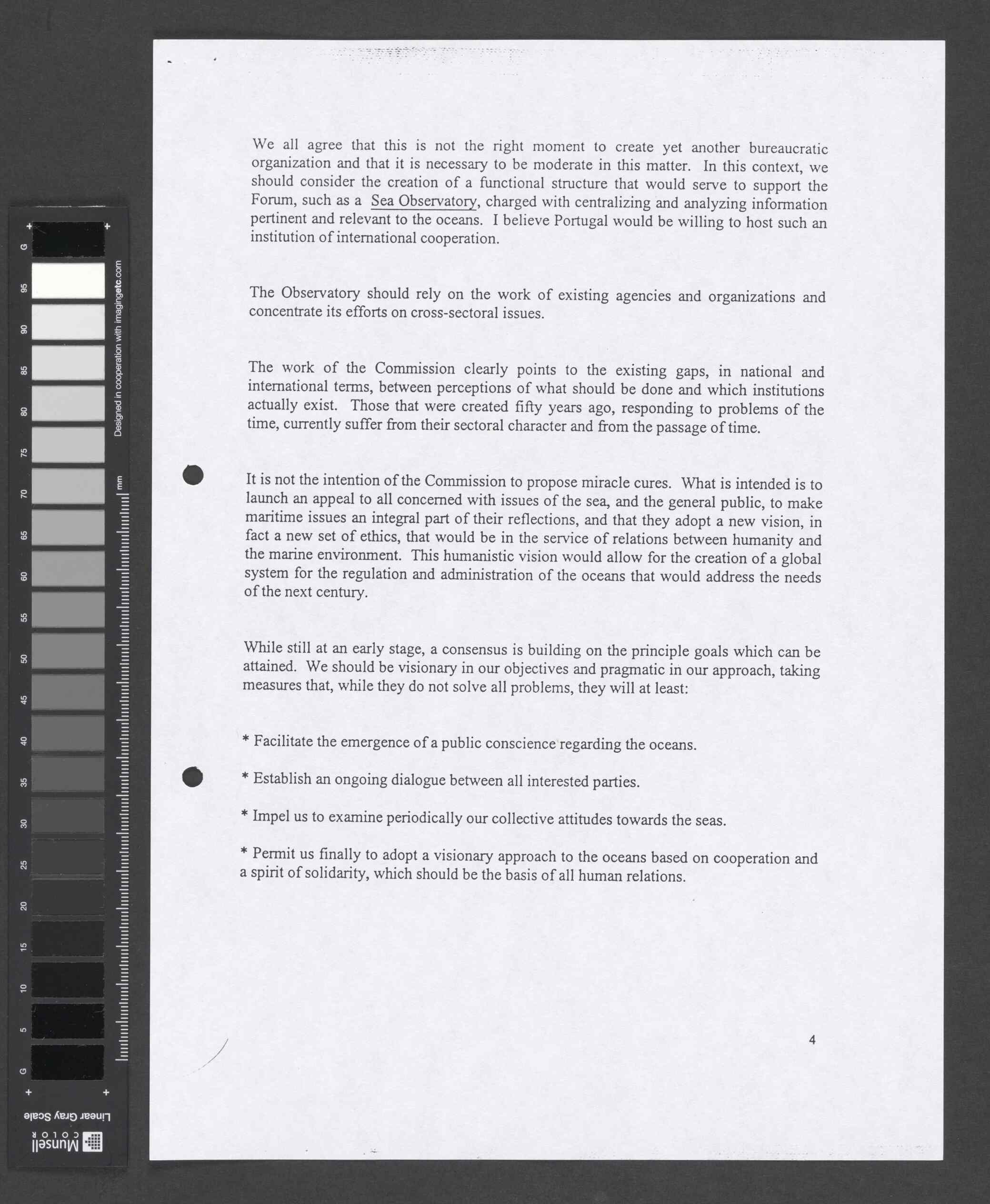 Mário Soares (1997), "Statement by H. E. Dr. Mário Soares, former President of the Republic of Portugal, on the Independent World Comission on the Oceans", Nova Iorque, Fundação Mário Soares / Comissão Mundial Independente para os Oceanos, Disponível HTTP: http://www.casacomum.org/cc/visualizador?pasta=10651.001.004 (2025-12-25)