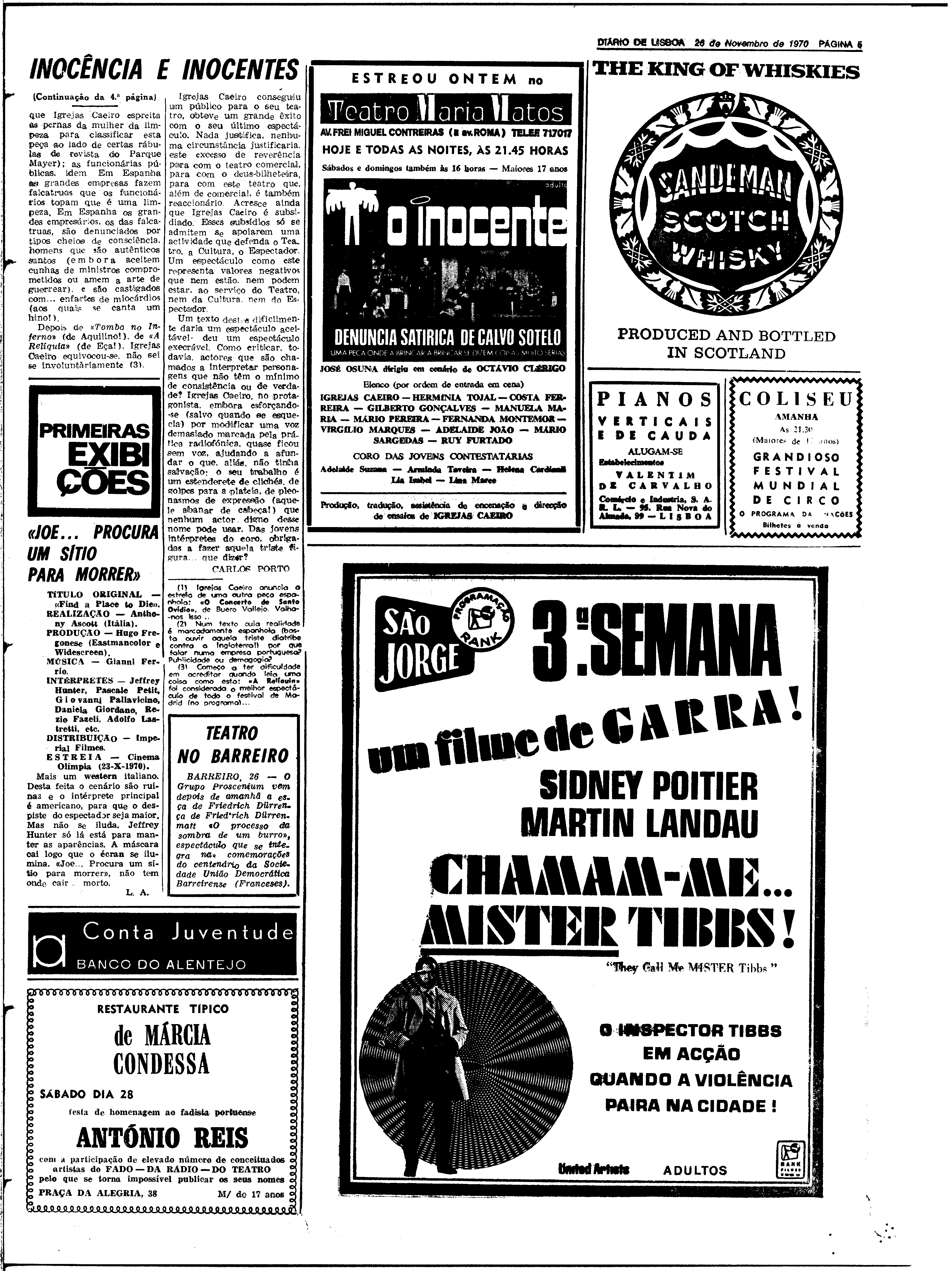 Instituição: Fundação Mário Soares e Maria Barroso Pasta: 06806.156.25207Título: Diário de LisboaNúmero: 17218Ano: 50Data: Quinta, 26 de Novembro de 1970Directores: Director: António Ruella RamosEdição: 1ª ediçãoObservações: Inclui supl. "Suplemento Literário".Fundo: DRR - Documentos Ruella RamosTipo Documental: IMPRENSADireitos: A publicação, total ou parcial, deste documento exige prévia autorização da entidade detentora.