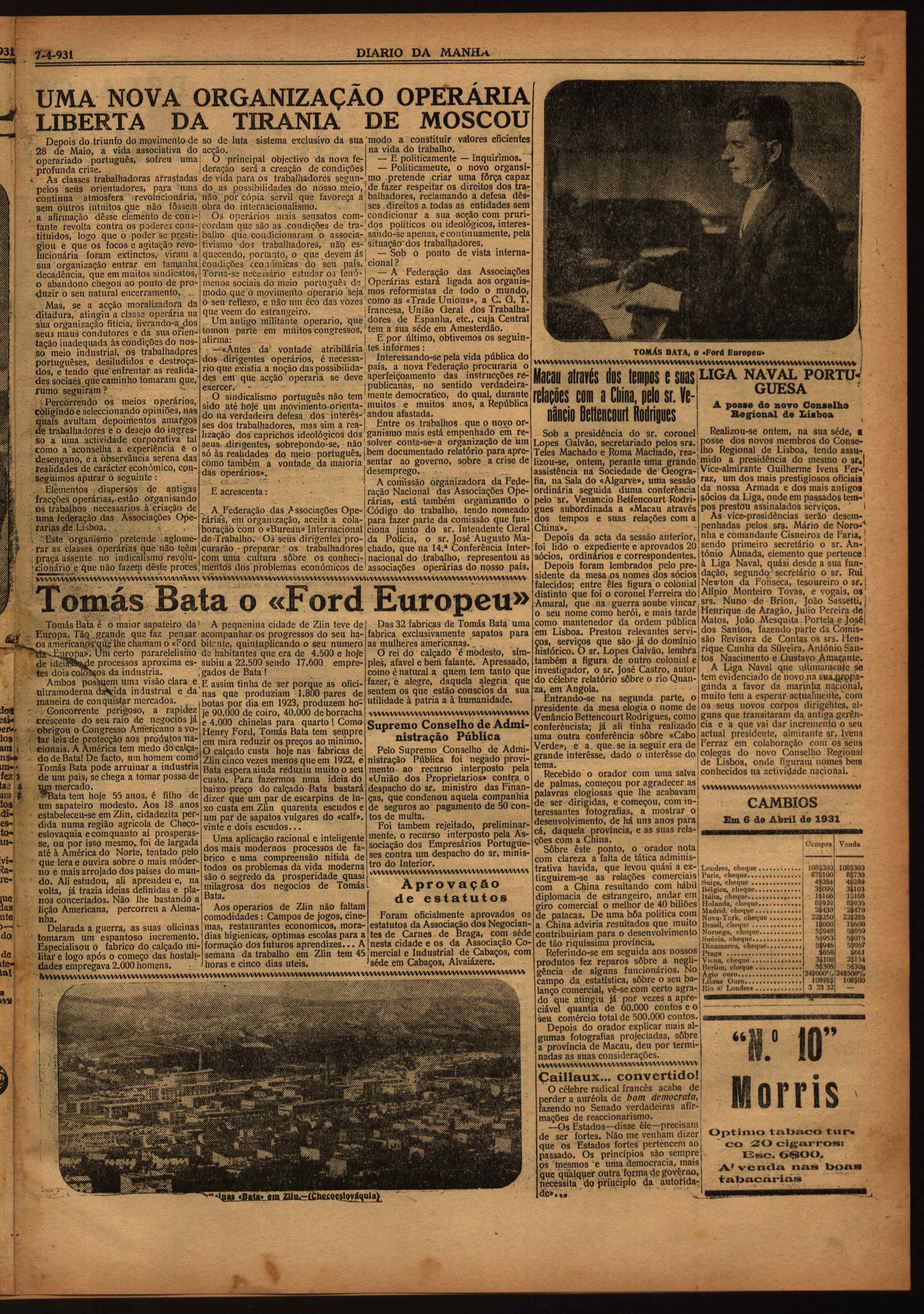 (1931), "Diário da Manhã", nº 4, Ano I, Terça, 7 de Abril de 1931, Fundação Mário Soares / Garcia Pulido, Disponível HTTP: http://www.casacomum.org/cc/visualizador?pasta=10434.004 (2025-12-27)