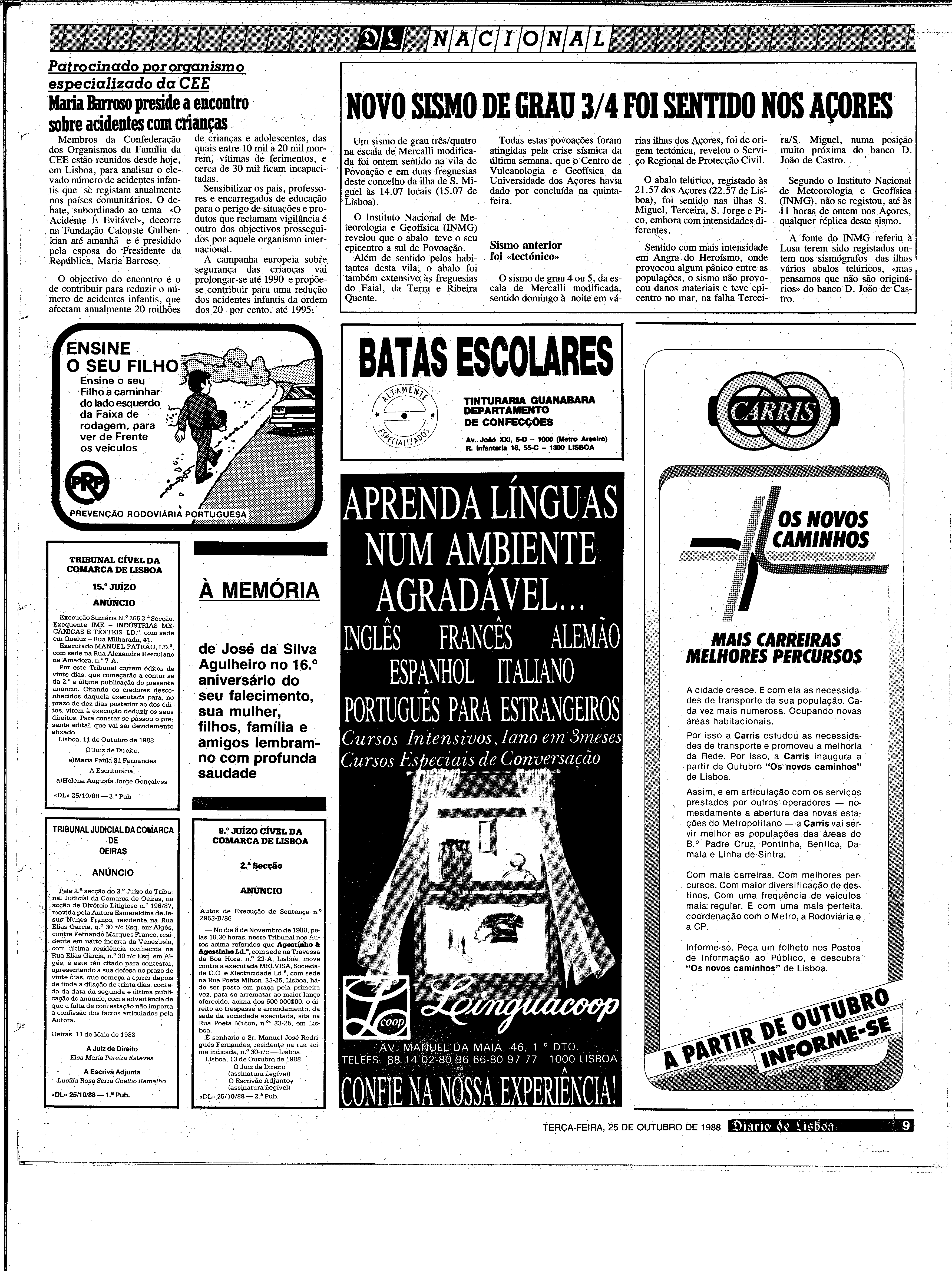 Instituição: Fundação Mário Soares e Maria Barroso Pasta: 06887.204.31283Título: Diário de LisboaNúmero: 22799Ano: 68Data: Terça, 25 de Outubro de 1988Directores: Director: António Ruella Ramos; Director Adjunto: Fernando Piteira SantosObservações: Inclui supl. "Ler/ Escrever".Fundo: DRR - Documentos Ruella RamosTipo Documental: IMPRENSADireitos: A publicação, total ou parcial, deste documento exige prévia autorização da entidade detentora.
