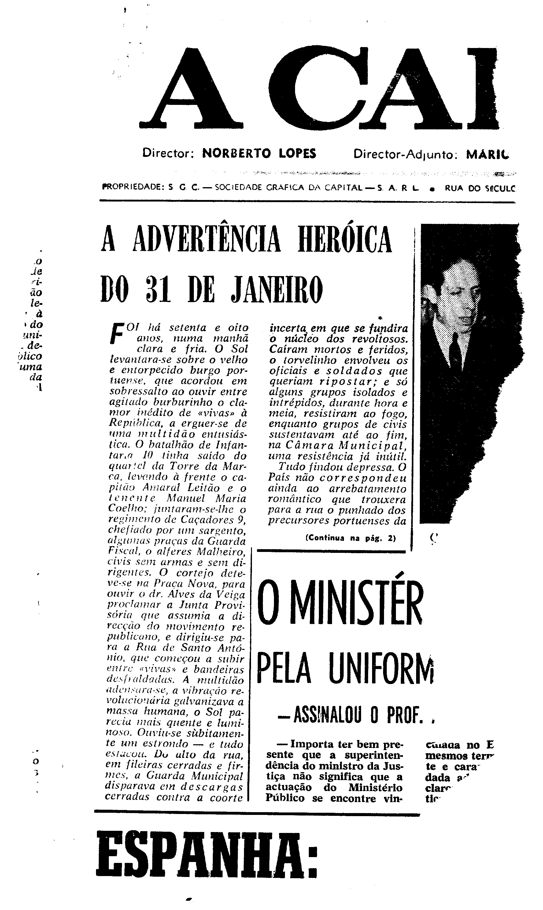 Instituição: Fundação Mário Soares e Maria Barroso Pasta: 04690.017Título: Recortes de imprensa dos jornais A Capital e Diário de Lisboa, relativos às comemorações do 31.JAN.1891Data: 1969Fundo: DTS - Documentos Teófilo Carvalho dos SantosTipo Documental: IMPRENSADireitos: A publicação, total ou parcial, deste documento exige prévia autorização da entidade detentora.