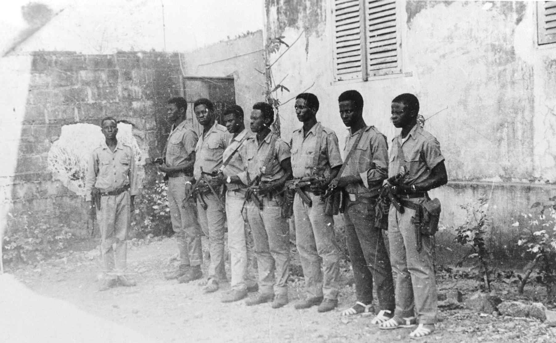 Instituição: Fundação Mário Soares e Maria Barroso Pasta: 05222.000.468Título: Militares armados [prisão de Conakry?]Assunto: Grupo de oito militares armados [prisão de Conakry?].Data: 1963 - 1973Fundo: DAC - Documentos Amílcar CabralTipo Documental: FotografiasDireitos: A publicação, total ou parcial, deste documento exige prévia autorização da entidade detentora.