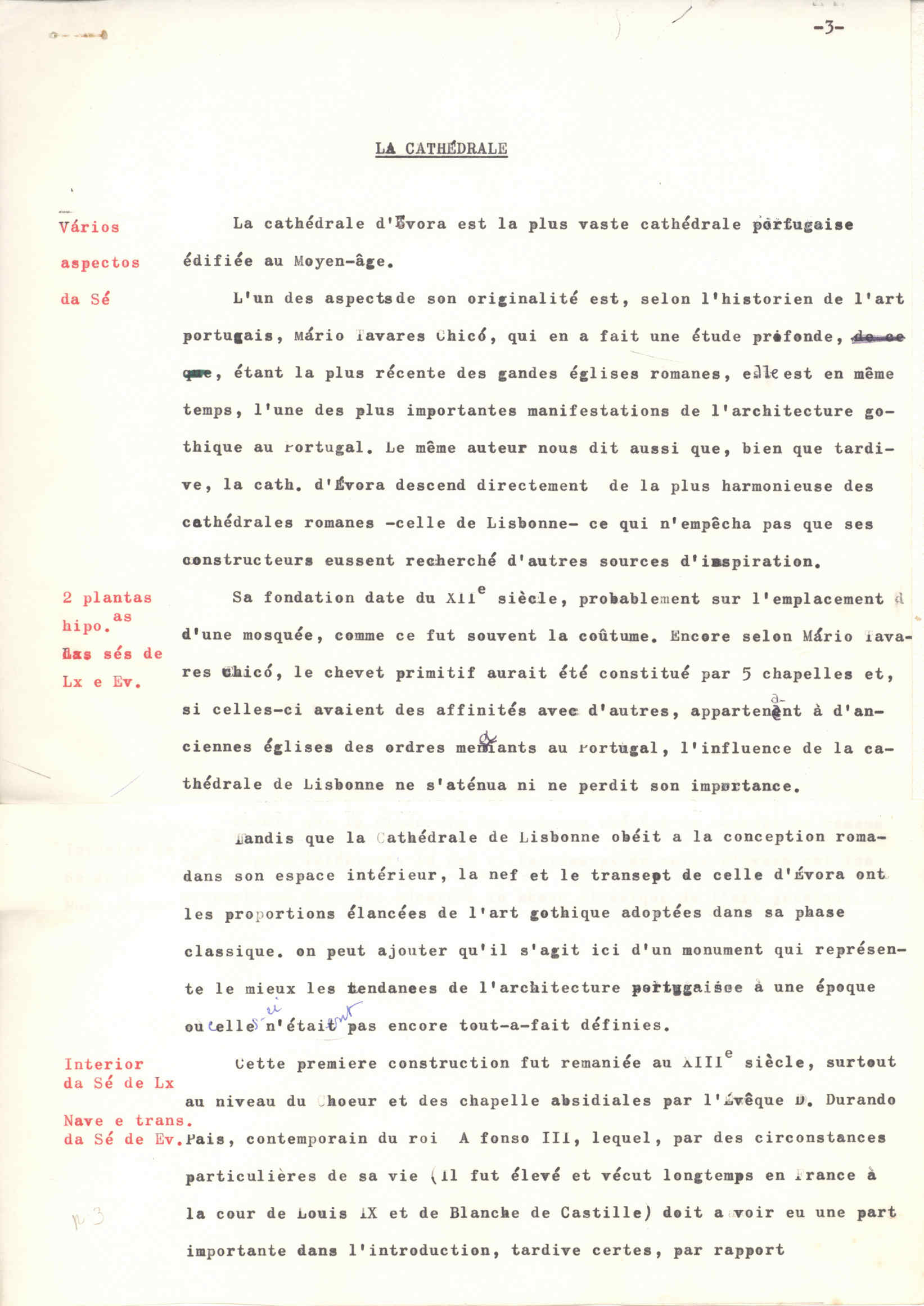 Instituição: Fundação Mário Soares e Maria Barroso Pasta: 05479.023Título: Catedral de ÉvoraAssunto: Texto em francês sobre a catedral de Évora.Data: s.d.Fundo: DTC - Documentos Mário e Alice ChicóTipo Documental: DocumentosDireitos: A publicação, total ou parcial, deste documento exige prévia autorização da entidade detentora.